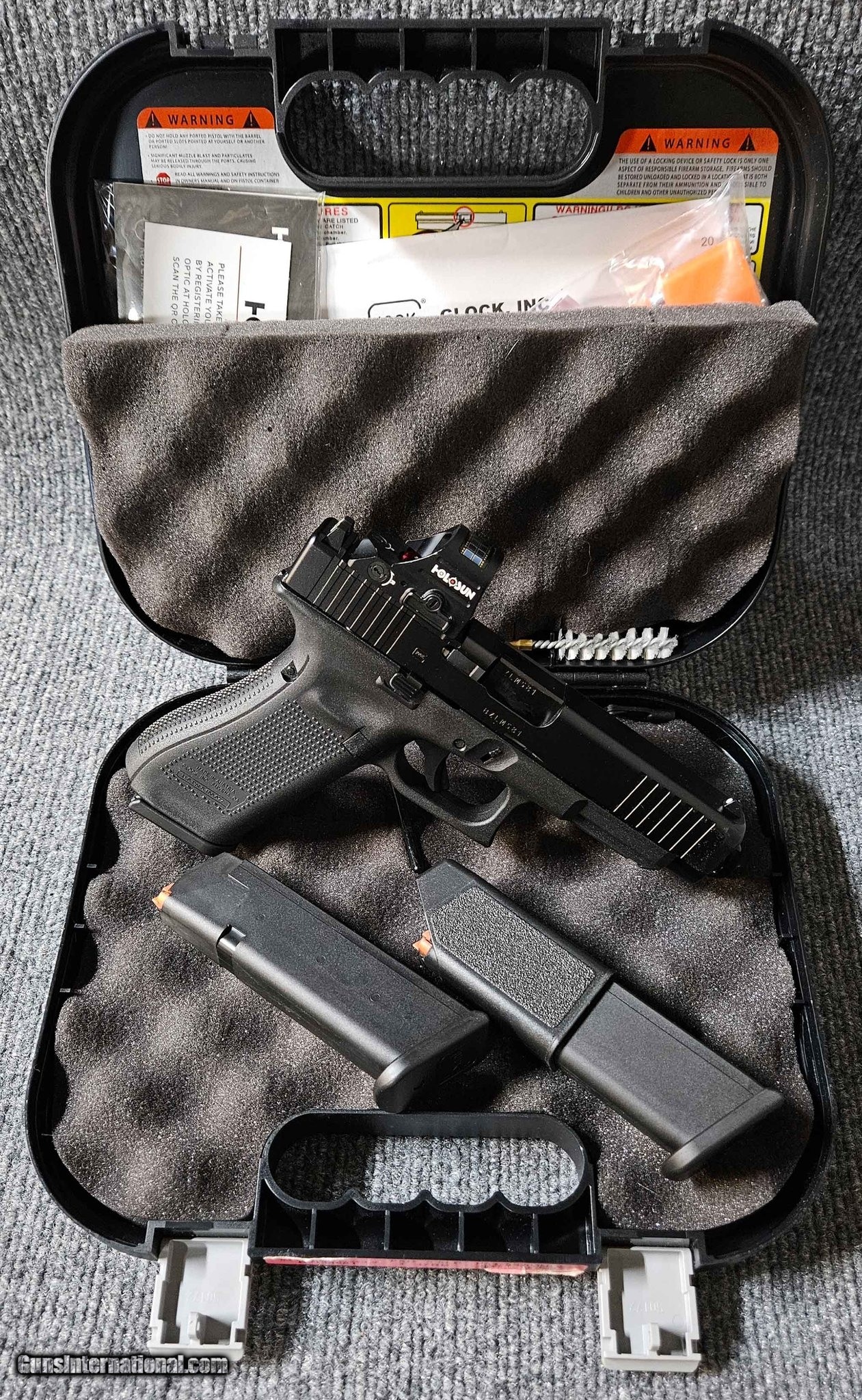 Description: Guns Listing ID: 493387 Glock 47 Gen 5 in excellent condition. This pistol has been well-maintained, with minimal rounds fired. It comes equipped with a Holosun 507C red dot, offering a crisp reticle and long battery life. The factory MOS cut makes mounting optics seamless. Includes: ? Glock 47 Gen 5 (MOS Ready) ? Holosun 507C Red Dot (Mounted & Zeroed) ? (x3) 17-Round Glock OEM Magazines ? Factory Case & Accessories ? Cleaning Kit The Glock 47 Gen 5 is a relatively new addition to Glock‚‚s lineup, introduced in 2019 primarily for U.S. Customs and Border Protection (CBP). It was initially exclusive to law enforcement but later became available to the civilian market. History & Background Developed as part of a contract for CBP, along with the Glock 19 Gen 5 MOS and Glock 26 Gen 5. Designed to be modular, allowing for parts compatibility with the Glock 19 Gen 5 and Glock 17 Gen 5. Became available to civilians in 2023, offering a unique hybrid design for Glock enthusiasts. Features & Specifications Caliber: 9mm Capacity: 17+1 rounds (standard magazine) Barrel Length: 4.49 inches (same as the Glock 17) Overall Length: 7.95 inches Weight: ~24.9 oz (without a magazine) Frame: Full-size Glock 17 frame Slide: Glock 17-length but compatible with Glock 19 frames Optic Ready: Comes with Modular Optic System (MOS) for red dot sights Gen 5 Features: Marksman barrel for improved accuracy No finger grooves for better ergonomics Ambidextrous slide stop Flared magwell for faster reloads Why is it Unique? The slide is interchangeable with a Glock 19, meaning you can mount a G47 slide on a G19 frame. Has all the latest Gen 5 enhancements while offering a full-sized G17-style slide. A great choice for duty use, competition, or personal defense SOLD Manufacturer: GLOCK Model: G47 GEN 5 Caliber Info: 9MM LUGER (9x19 PARA) Condition: Used - Non-Certified Barrels: 5 Finish: black |
