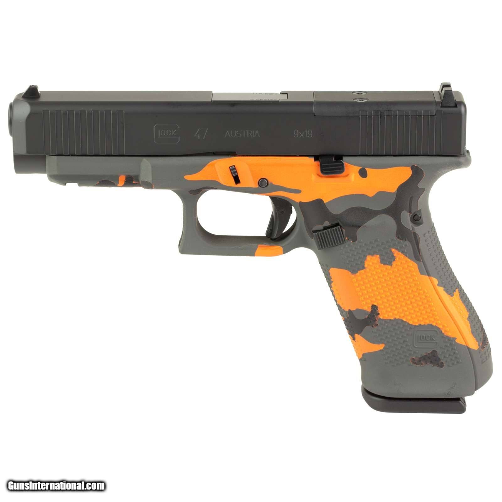 Description: Guns Listing ID: 534513 GLOCK G47 GEN 5 MOS 9MM 17 ROUND BLAZE CAMO Striker Fired, Semi-automatic, Polymer Frame Pistol, Full Size, 9MM, 4.49\" Barrel, Custom Blaze Camo Cerakote Finish by Skydas, Optics Ready, Fixed Sights, 17 Rounds SOLD Manufacturer: GLOCK Model: G47 GEN 5 Caliber Info: 9MM LUGER (9x19 PARA) Condition: new Barrels: 4.49" BARREL Action: STRIKER FIRED Finish: BLACK/BLAZE |