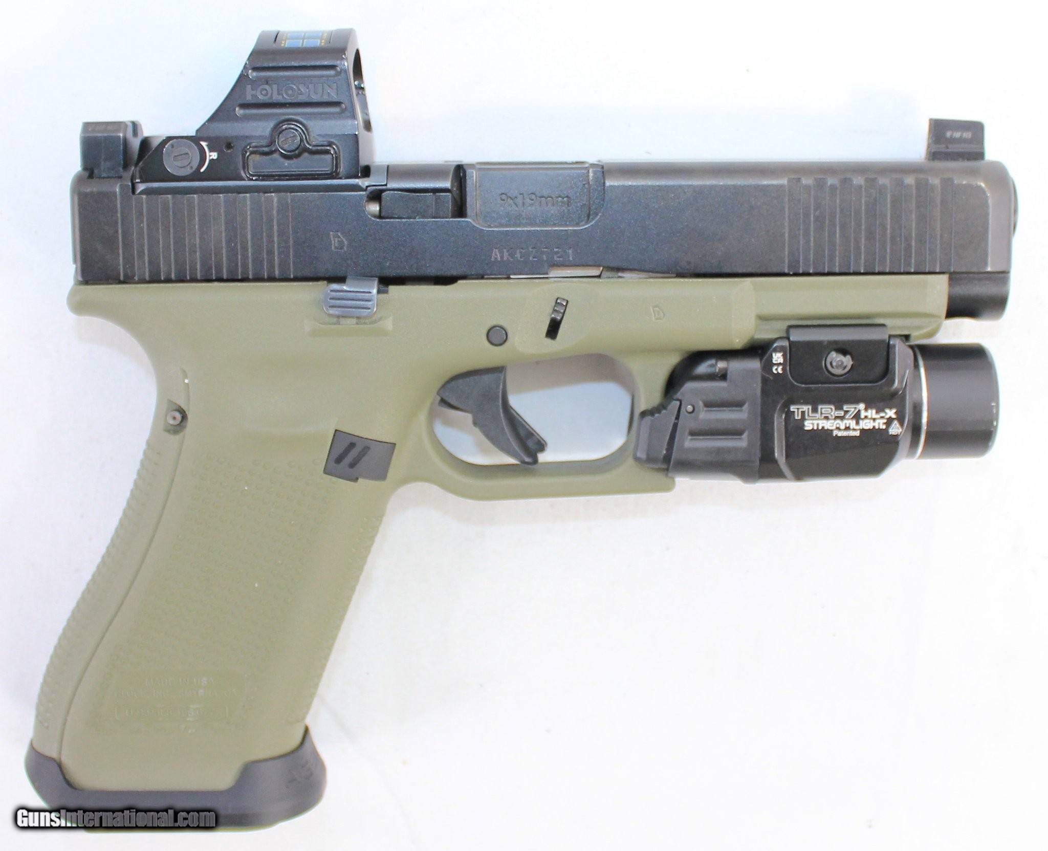 GLOCK GLOCK 47 GEN 5 MOS 9MM 4.5" GREEN W/ HOLOSUN 507C-RD, NOVESKE BBL, SL TLR-7 HL-X, HOLSTER 9MM LUGER (9x19 PARA)