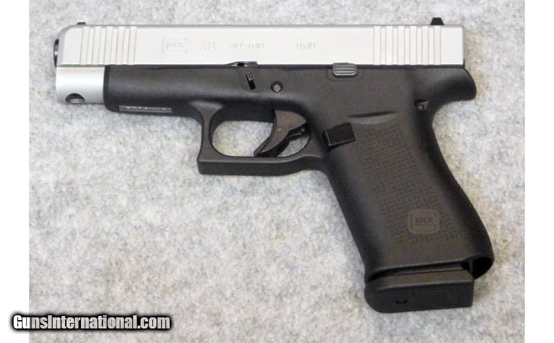 Description: Glock ~ 48 ~ Chambered in 9 mm Luger. A slim pistol providing mid-size capability into an easier to conceal package. Firearm features a silvery nPVD coated slide for durability. Comes with box including factory documentation, and two 10 + 1 capacity magazines. 9mm Luger SOLD Chambers: 9 mm Luger. Metal Condition: Very good condition. Bore Condition: Good condition. Weight: 1.5 pounds Sights: Iron sights. Item Location: Acworth, GA |