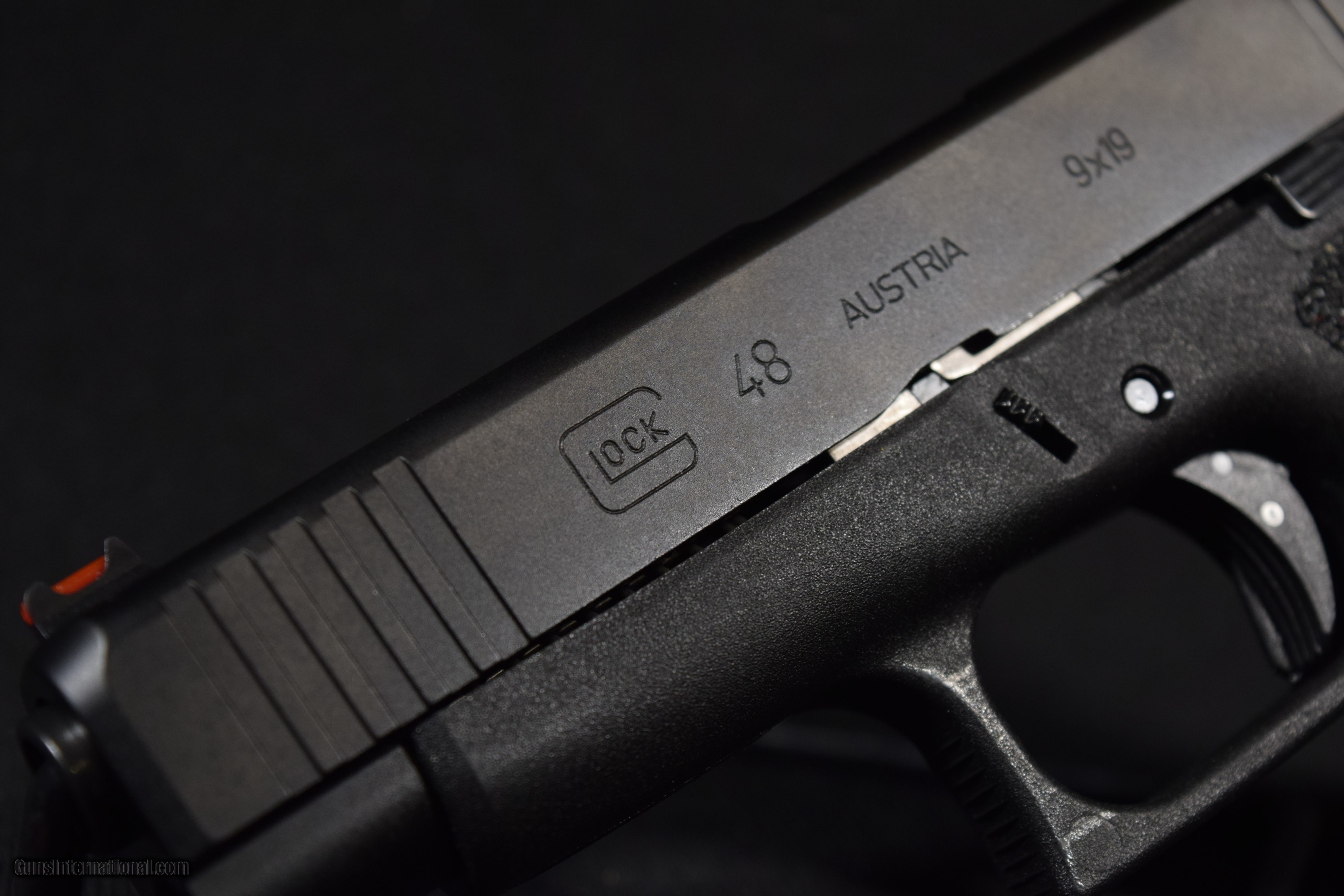 Description: The Glock 48 has a compact Slimline frame, built-in beaver tail, match-grade GLOCK Marksman Barrel (GMB) and precision-milled front serrations. It features Glock's Safe Action system which provides a consistent trigger pull from the first to the last round. The three automatic independently operating mechanical safeties are built into the fire control system of the pistol. All three safeties disengage sequentially as the trigger is pulled and automatically reengage when the trigger is released. The frame is made of polymer with hardened steel guides. It features an ideal grip angle and low weight. The slide stop lever and the magazine catch are easily operated with the shooting hand. The advanced surface treatment of the slide results in optimal hardness by considerably reducing wear and tear and it makes it corrosion resistant, even when operating in saltwater conditions. The matte surface minimizes light reflection. The barrel is mechanically locked and cold-hammer forged. It also has the same advanced surface treatment as the slide. Its extractor serves as a loaded chamber indicator to comply with the laws of certain states and its position may visually and physically indicate whether there is a cartridge in the chamber of the pistol.
