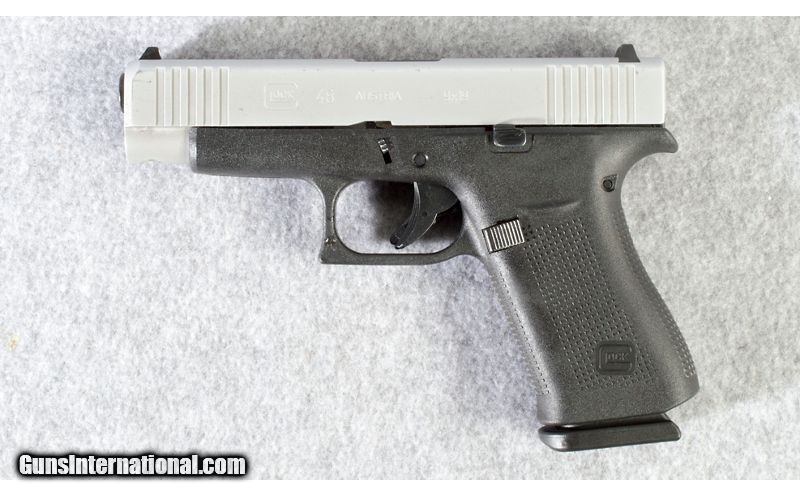 Description: Older two-tone Glock 48 chambered in 9mm Luger. Finish is very good to excellent with minor holster wear. Bore is excellent. Comes in factory Glock case with extra ten round magazine. 9mm Luger SOLD Metal Condition: Very Good Bore Condition: Excellent Barrels: 4" Barrel Triggers: Single Butt Pad: Checkered Polymer Sights: Stock Sights Item Location: short pump |