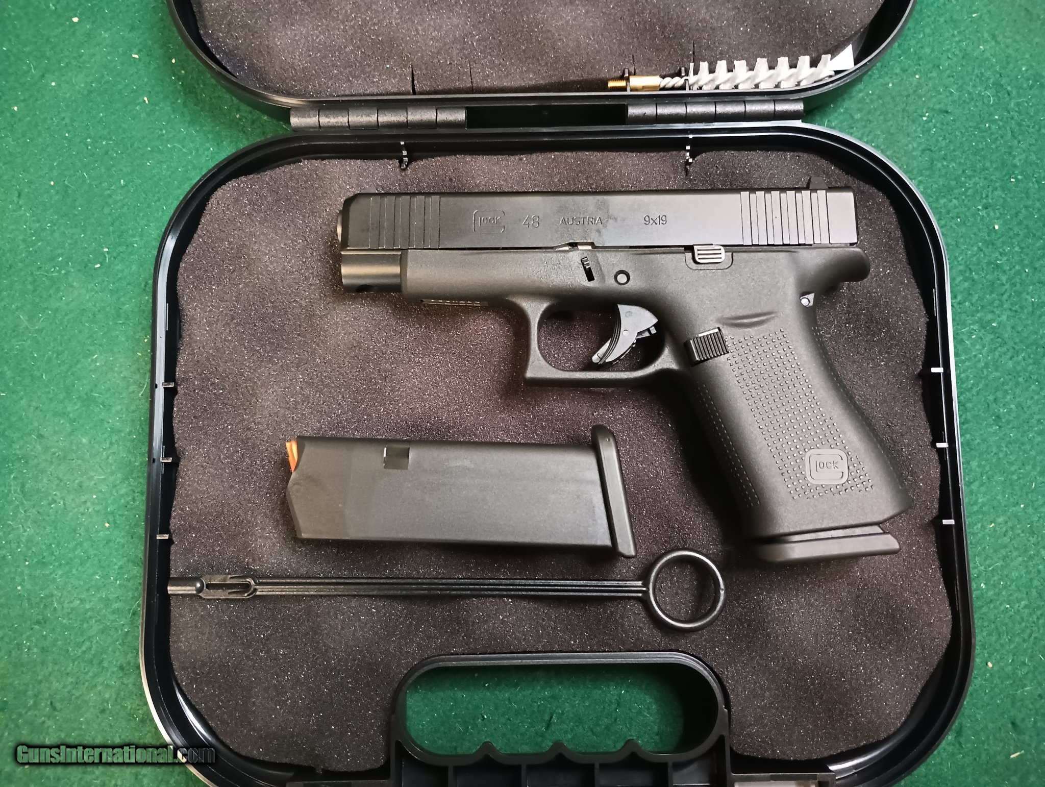 Description: Guns Listing ID: 465188 This Glock 48 is chambered in 9mm and has a 4\" barrel. This one is in excellent condition and comes with two Glock 10rd. magazines. Original case included. SOLD Manufacturer: GLOCK Model: G48 Caliber Info: 9MM LUGER (9X19 PARA) Condition: Used - Non-Certified Barrels: 4.17 BARREL Action: STRIKER |