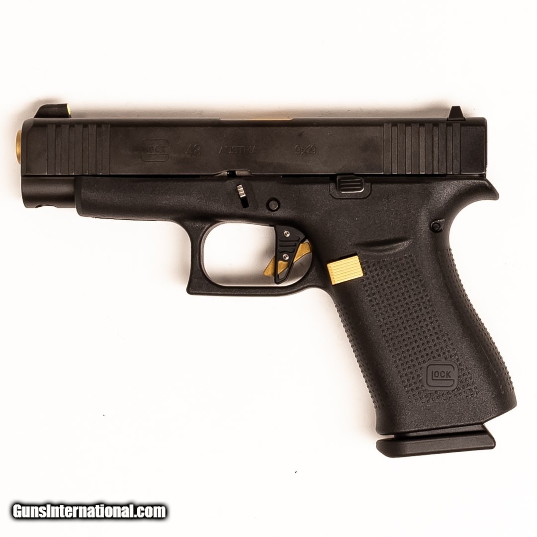 Description: Guns Listing ID: 585912 The Glock 48 is the single-stack variant of the Glock 19 with a slimmer frame. Compact and built to Glock‚‚s legendary level of quality, this single-action handgun makes a great option for concealed carry and home defense. This G48 Gen 5 is in excellent condition! It is equipped with XS Big Dot tritium night sights, NDZ gold extended mag release, Ranger Proof precision trigger, gold barrel, and stainless recoil spring. Purchase includes the original case, manual, two 10-round magazines, and the original barrel and recoil spring SOLD Manufacturer: GLOCK Model: G48 GEN5 Caliber Info: 9MM LUGER (9X19 PARA) Condition: Used - Certified Barrels: 4.2 BARREL Finish: BLACK |