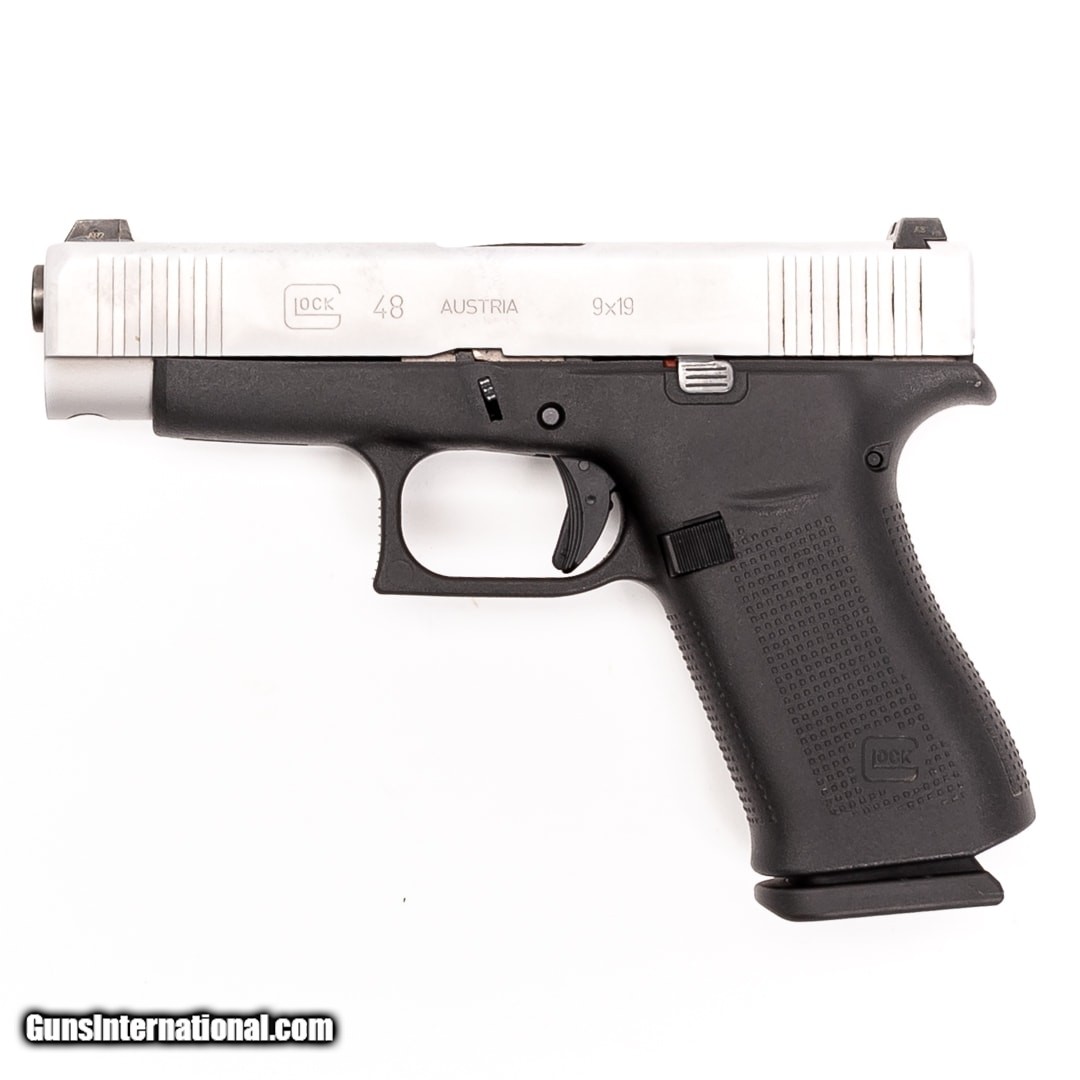 Description: Guns Listing ID: 328168 The Glock 48 is the single stack variant of the Glock 19 with a slimmer frame and a slide factory finished in silver. Compact and built to Glock‚‚s legendary level of quality, this handgun makes a great option for concealed carry and home-defense. 3 X 10 round magazines, the original case and a manual are included SOLD Manufacturer: GLOCK Model: G48 SILVER Caliber Info: 9MM LUGER (9X19 PARA) Condition: Used - Certified Barrels: 4.25 BARREL Finish: BLACK AND GRAY |