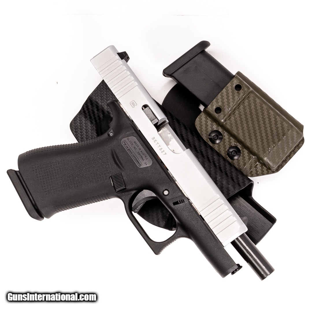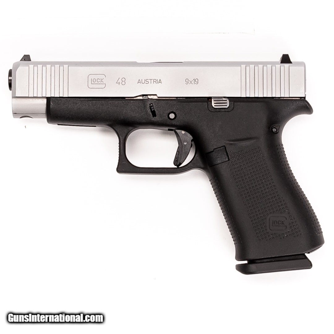 Description: Guns Listing ID: 328348 The Glock G48 is a semi-automatic, striker fired pistol chambered in 9mm with a 10+1 round capacity. A 4.2-inch barrel runs under the nPVD coated steel slide equipped with both front and rear serrations and Glock's signature sights: white dot front, horseshoe rear. This pistol comes with two 10-round mags, an express concealment left-handed kydex holster, and a green kydex mag holster. SOLD Manufacturer: GLOCK Model: G48 Caliber Info: 9MM LUGER Condition: Used - Certified Barrels: 4.2 BARREL Finish: TWO-TONE STAINLESS |