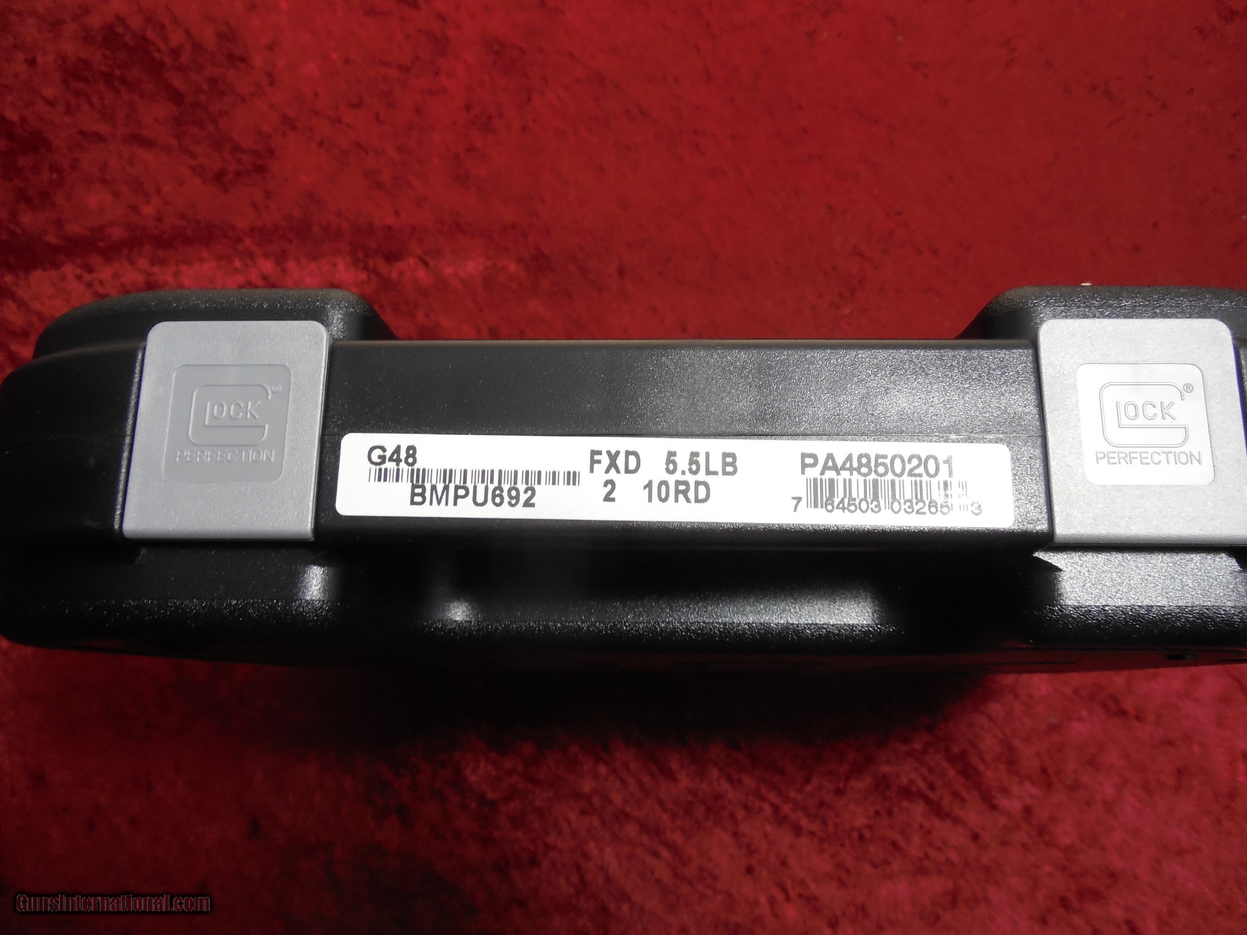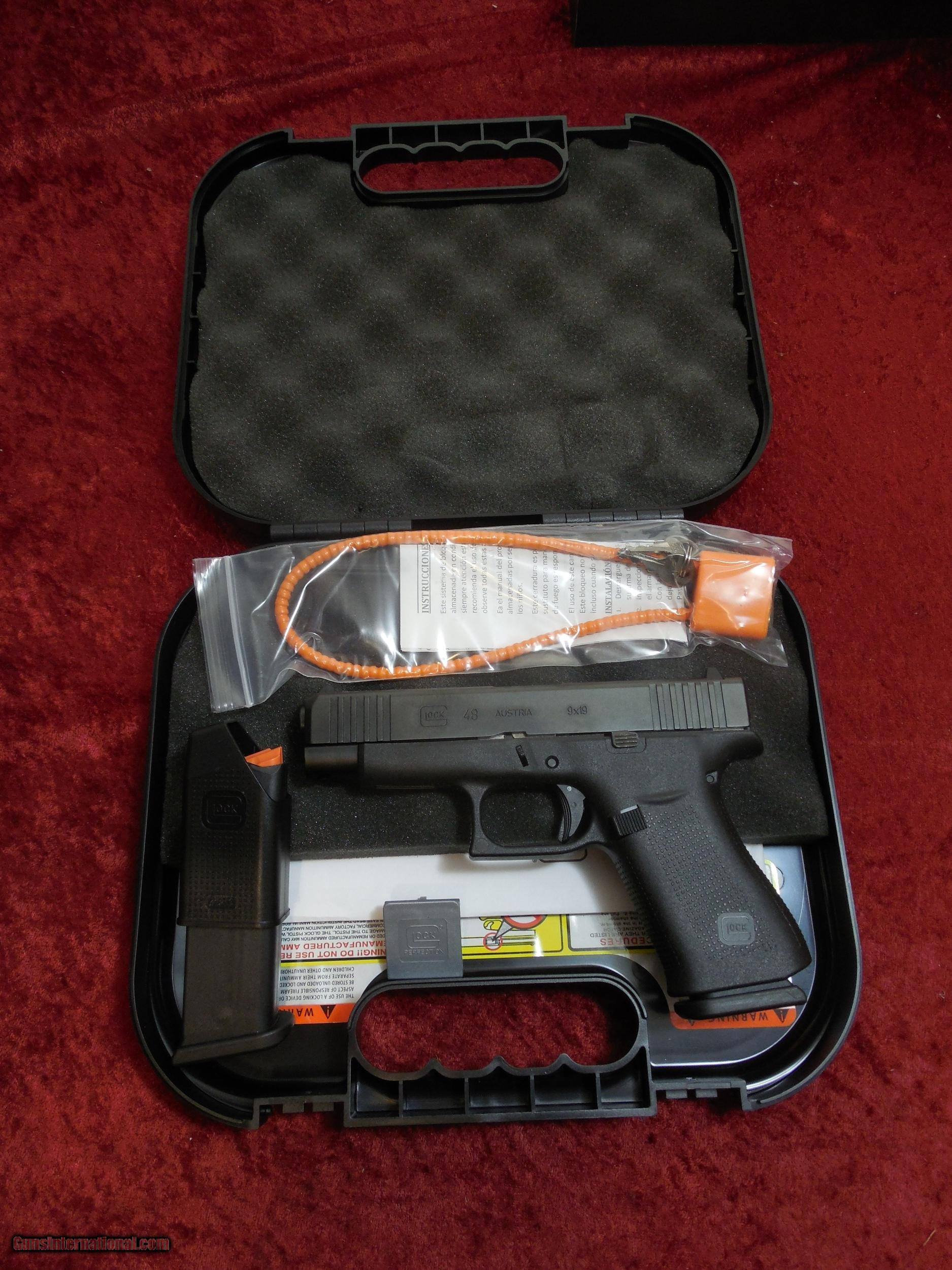 Description: Glock 48 9mm PST 10 round Blk w/ plastic Case 2 mags NEW #PA4850201 Safe Action--3 separate Automatic Safeties This is a brand new in box Glock Model 48, semi-auto pistol in 9mm, Matte Black finish, White Dot front sight and White Outline Rear Sight, comes with 2 mags and a black plastic case. Price: $449.00