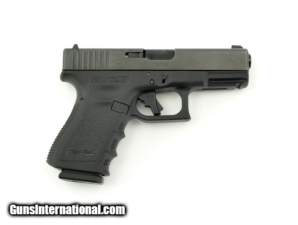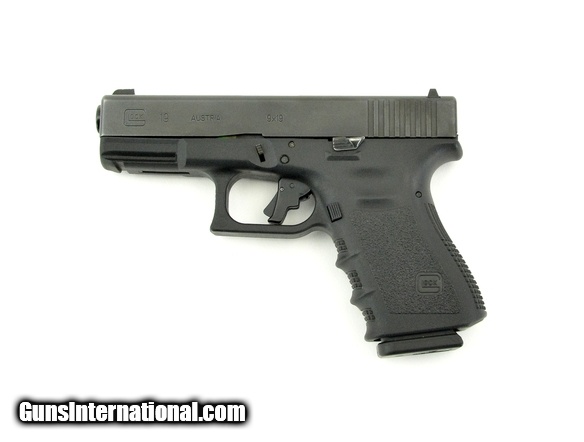 Glock 19 9mm caliber pistol. Compact model with upgraded trigger and night sights in excellent condition.