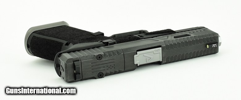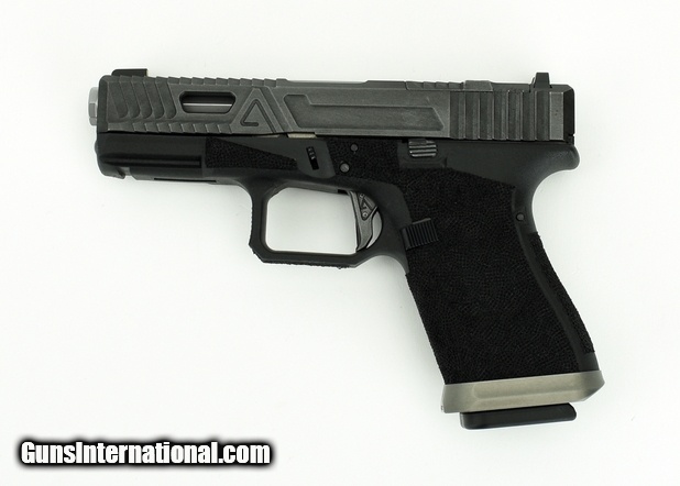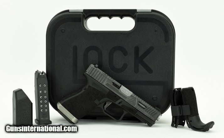 Description: Glock 19 Generation 4 9mm caliber pistol. Agency Arms “Bone-Saw” with slide reduction cuts, gray wartorn finish, night sights, upgraded trigger, RMR cut, Magwell and grip stippling in excellent condition with box and extra magazine. An outstanding custom job.