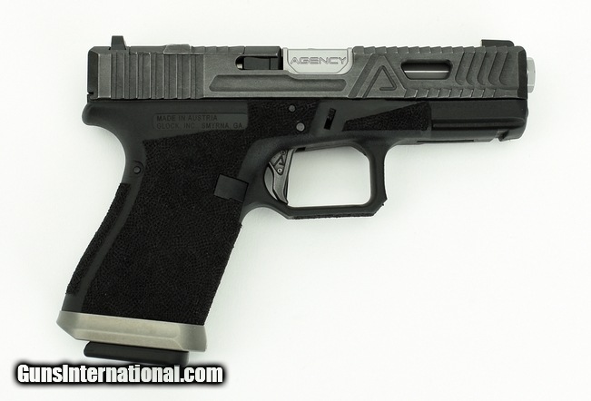 Glock 19 Generation 4 9mm caliber pistol. Agency Arms “Bone-Saw” with slide reduction cuts, gray wartorn finish, night sights, upgraded trigger, RMR cut, Magwell and grip stippling in excellent condition with box and extra magazine. An outstanding custom job.