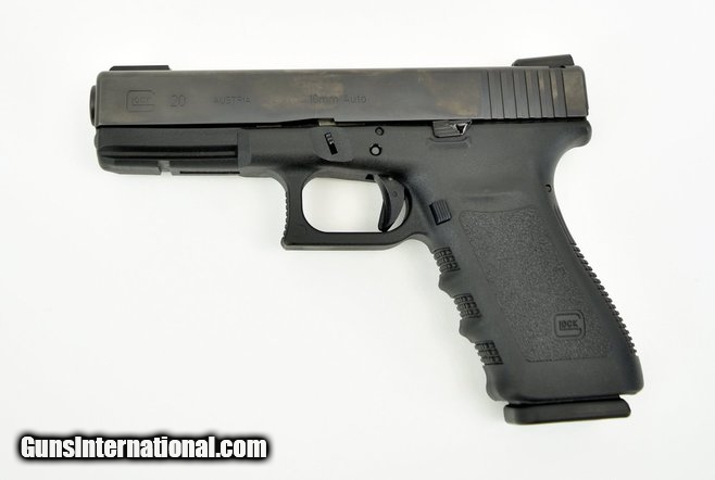 Description: Glock 20 10mm caliber pistol. Full size model with fiber optic night sights in excellent condition.