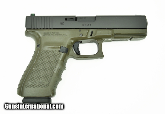Glock 21 Gen 4 .45 caliber pistol. This is a full size gun with a dark gray frame and night sights. Excellent condition.