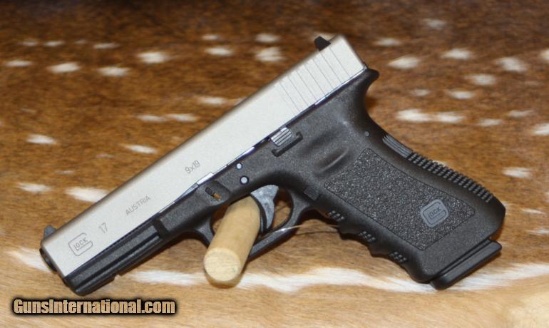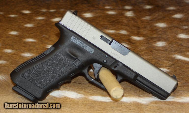 Description: This is the Glock 17 Generation 3 with an aftermarket Cerakote in titanium. It comes with 2-17rd. magazines, hard case, and paperwork. This pistol is new in the box and unfired. SOLD |