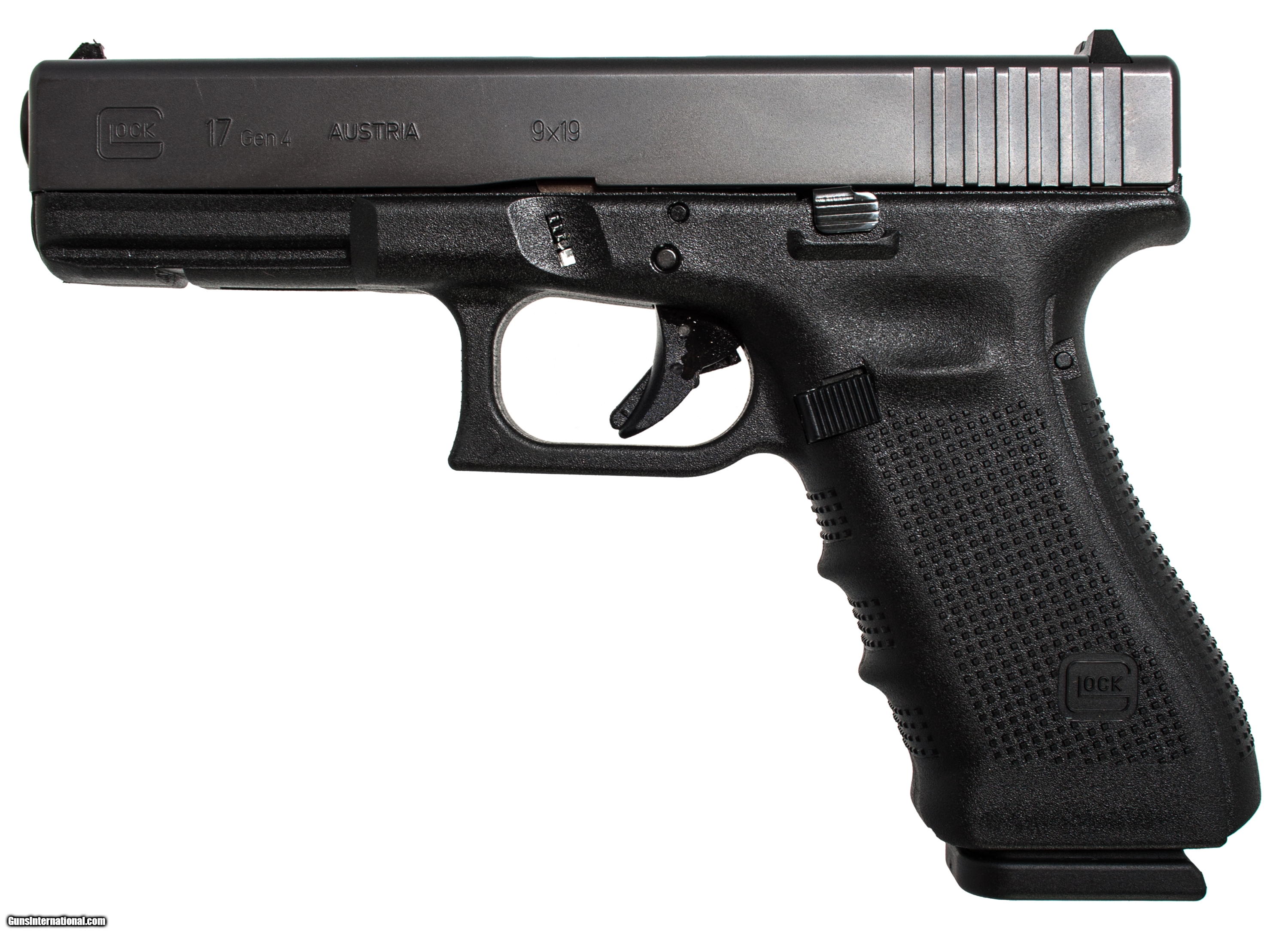 Glock 17 Gen 4 chambered in 9 mm with a 4.5 inch barrel case and 2 extra magazines. This gun is in excellent condition and is covered by Dury's Lifetime Warranty.