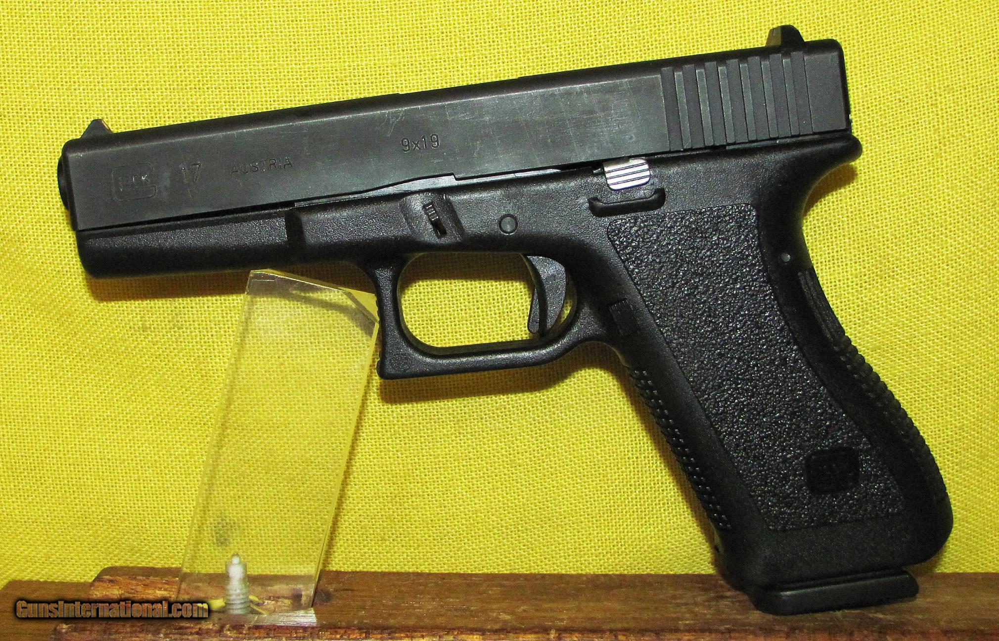 Description: GLOCK 17 IN 9MM CAL., WITH 4 1/2" BARREL. COLOR MATTE. CONDITION 98%. SERIAL NUMBER XU015US. GLOCK MODEL 17, BRIGHT SHINY BORE, COMES WITH ONE FACTORY MAGAZINE, 98% FACTORY FINISH. OUR NEW STOCK # D33321. SOLD |