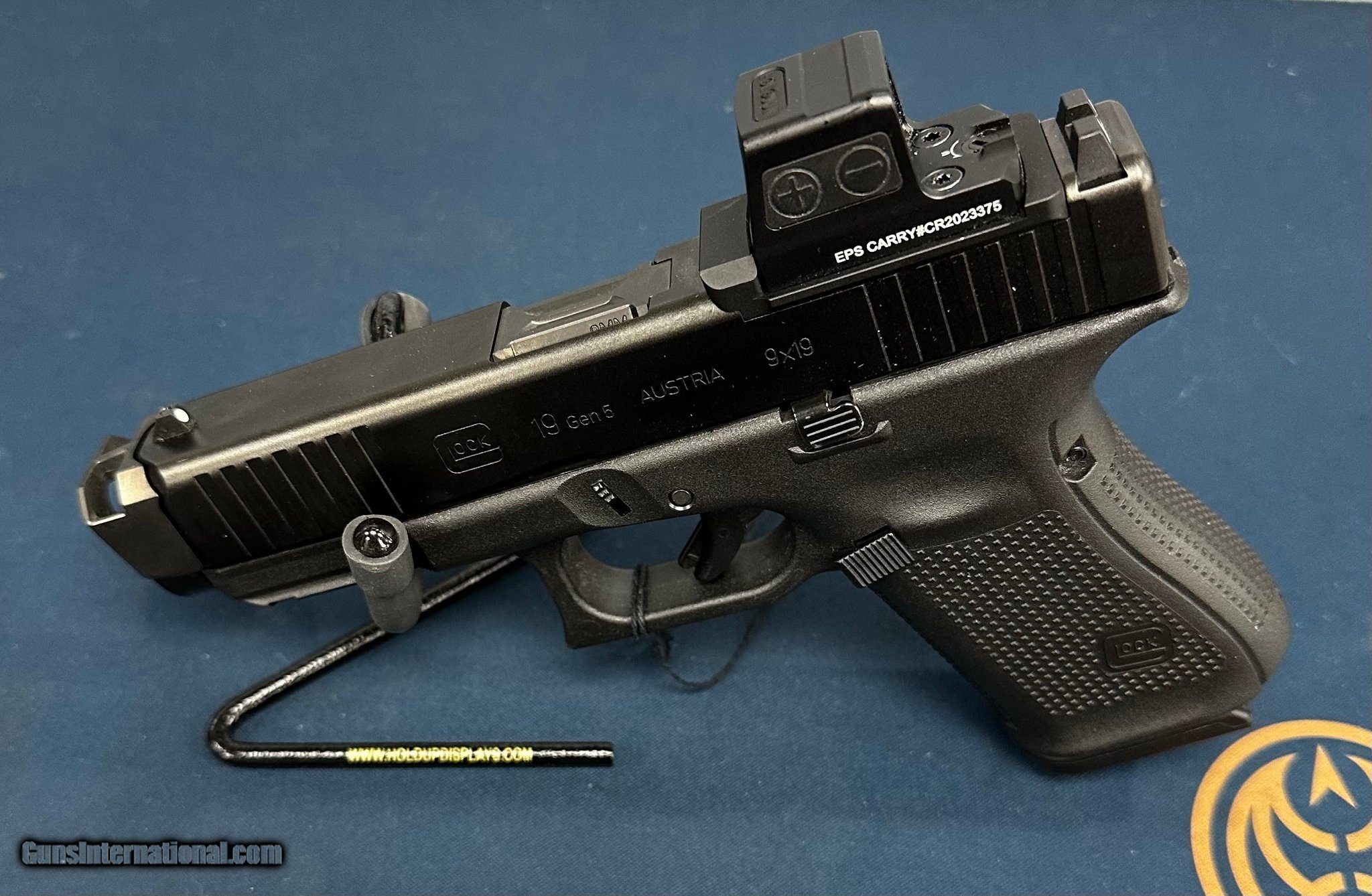 Description: Guns Listing ID: 1301346 INCLUDES AN EPS CARRY HOLOGRAPHIC SIGHT, (3) 15RD MAGAZINES, AND ORIGINAL BOX. SOLD Manufacturer: GLOCK Model: 19 19 Gen 5 Caliber Info: 9MM LUGER (9X19 PARA) Condition: Used - Non-Certified Barrels: 4 BARREL |