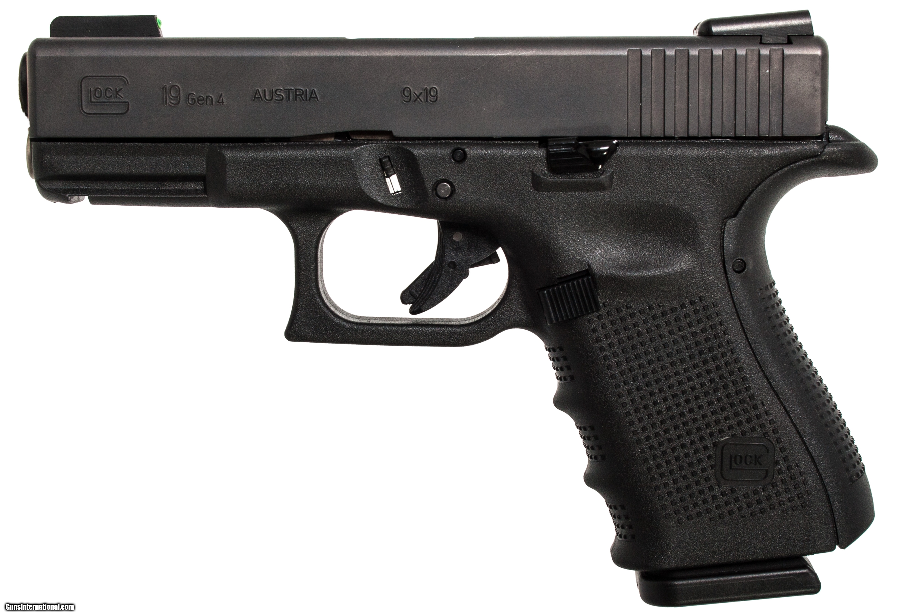 Glock 19 Gen 4 chambered in 9 mm with a 4 inch barrel and fiber optic sights. This gun is in excellent condition and is covered by Dury's Lifetime Warranty.