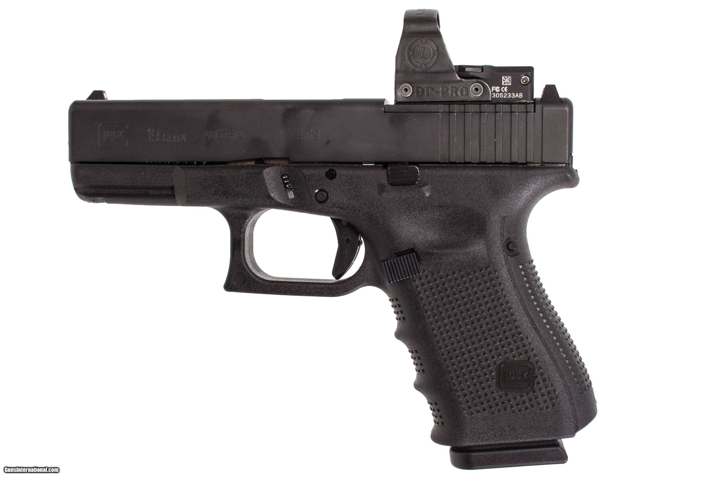 Glock 19 Gen 4 chambered in 9 mm with a 4 inch barrel 1 extra magazine and a Leupold Delta Point Pro 7.5 MOA. This gun is in excellent condition and is covered by Dury's Lifetime Warranty.