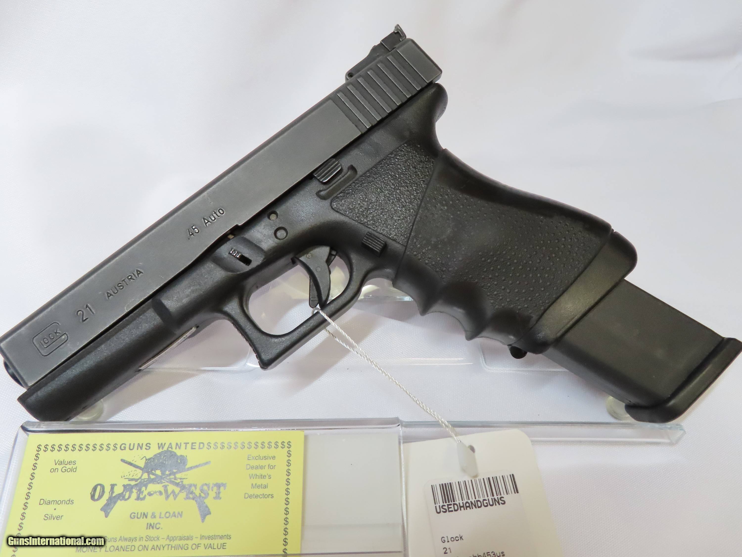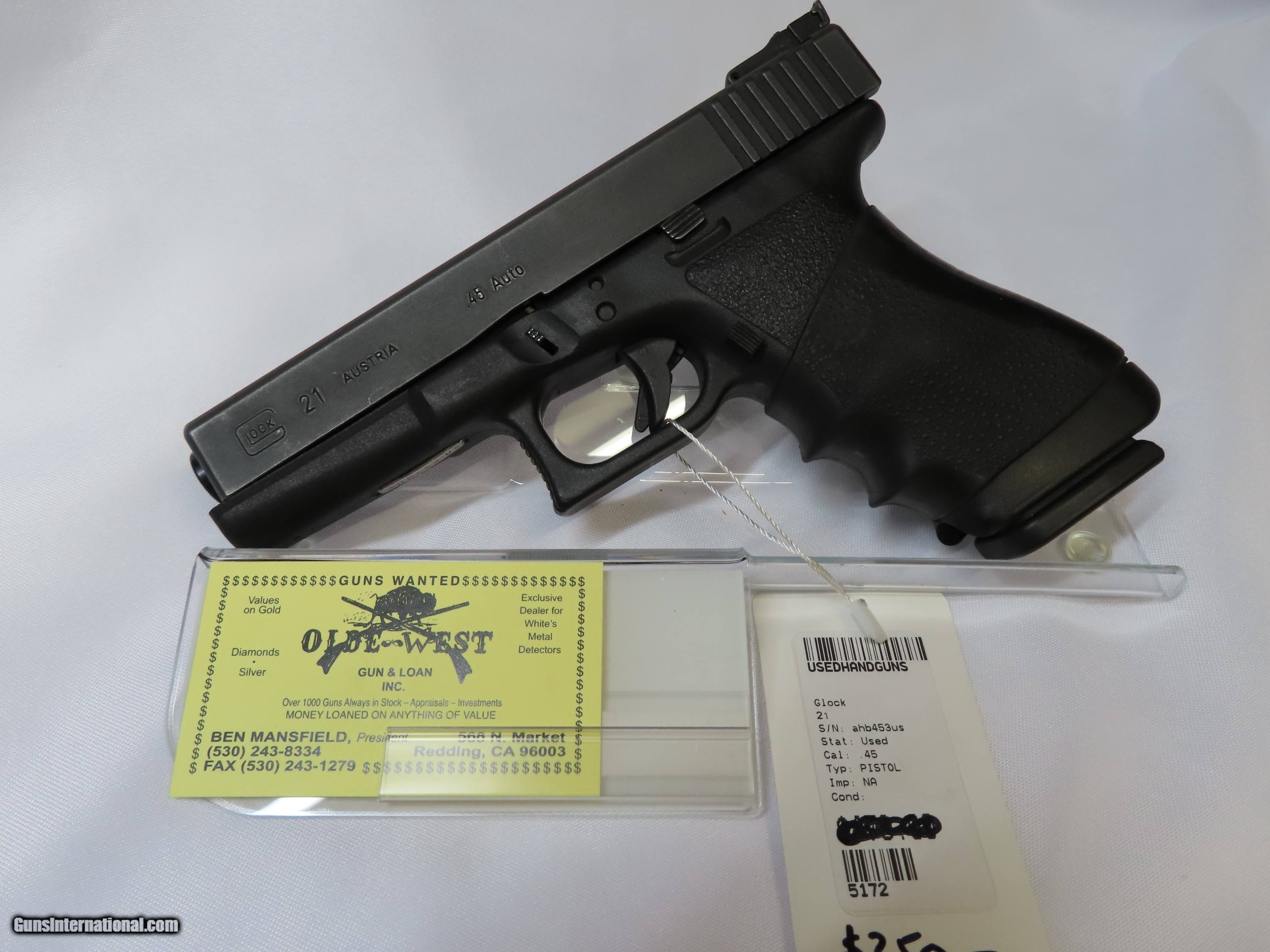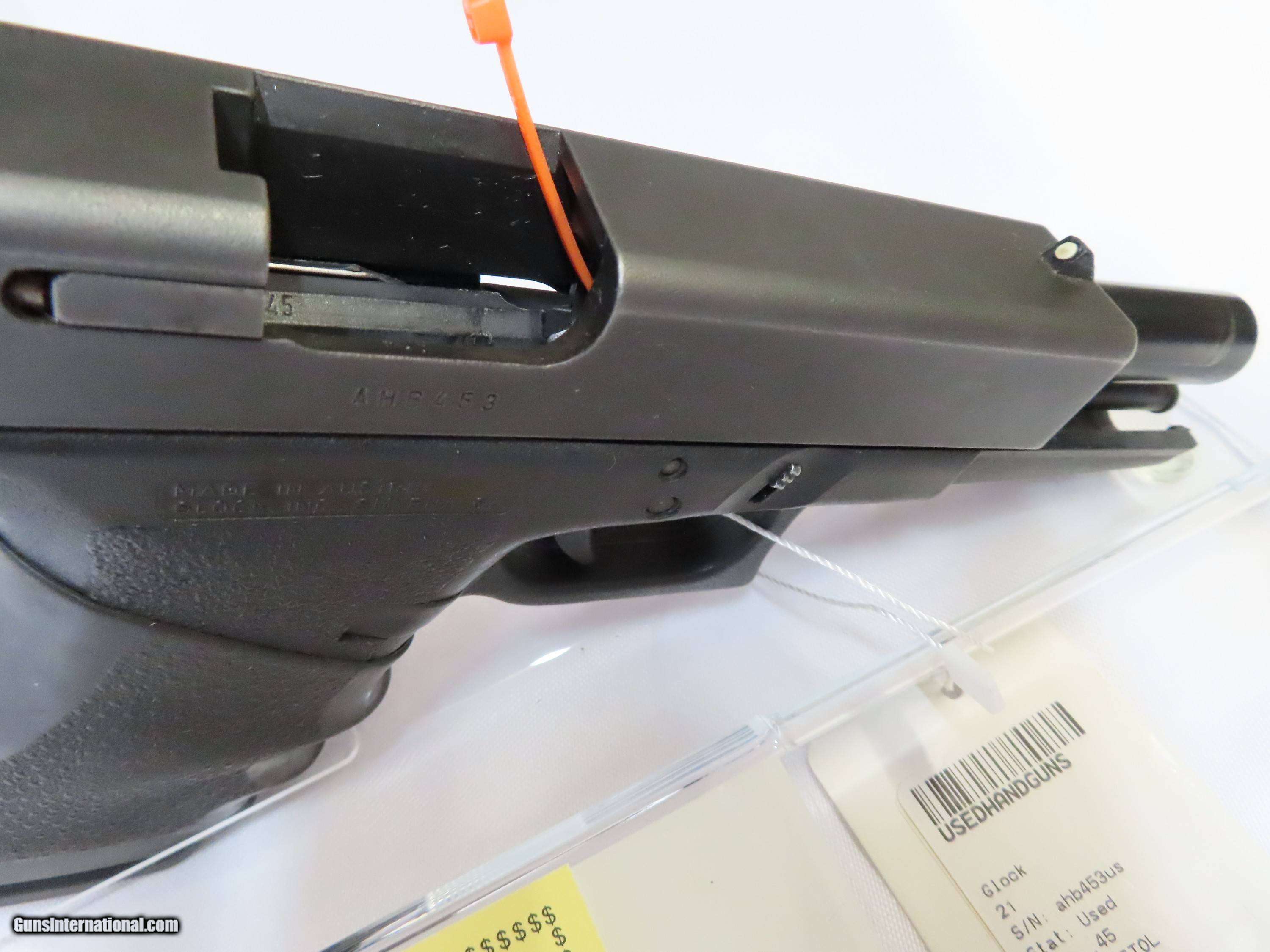 Description: GLOCK21, 45 ACP PISTOL IN ALL BLACK IN GREAT CONDITION AND COMES WITH ONE MAGAZINE SOLD Handgun Caliber: .45 ACP (.45 Auto) Manufacturer: GLOCK Model: 21 Serial Number: AHB453US Condition: GREAT |
