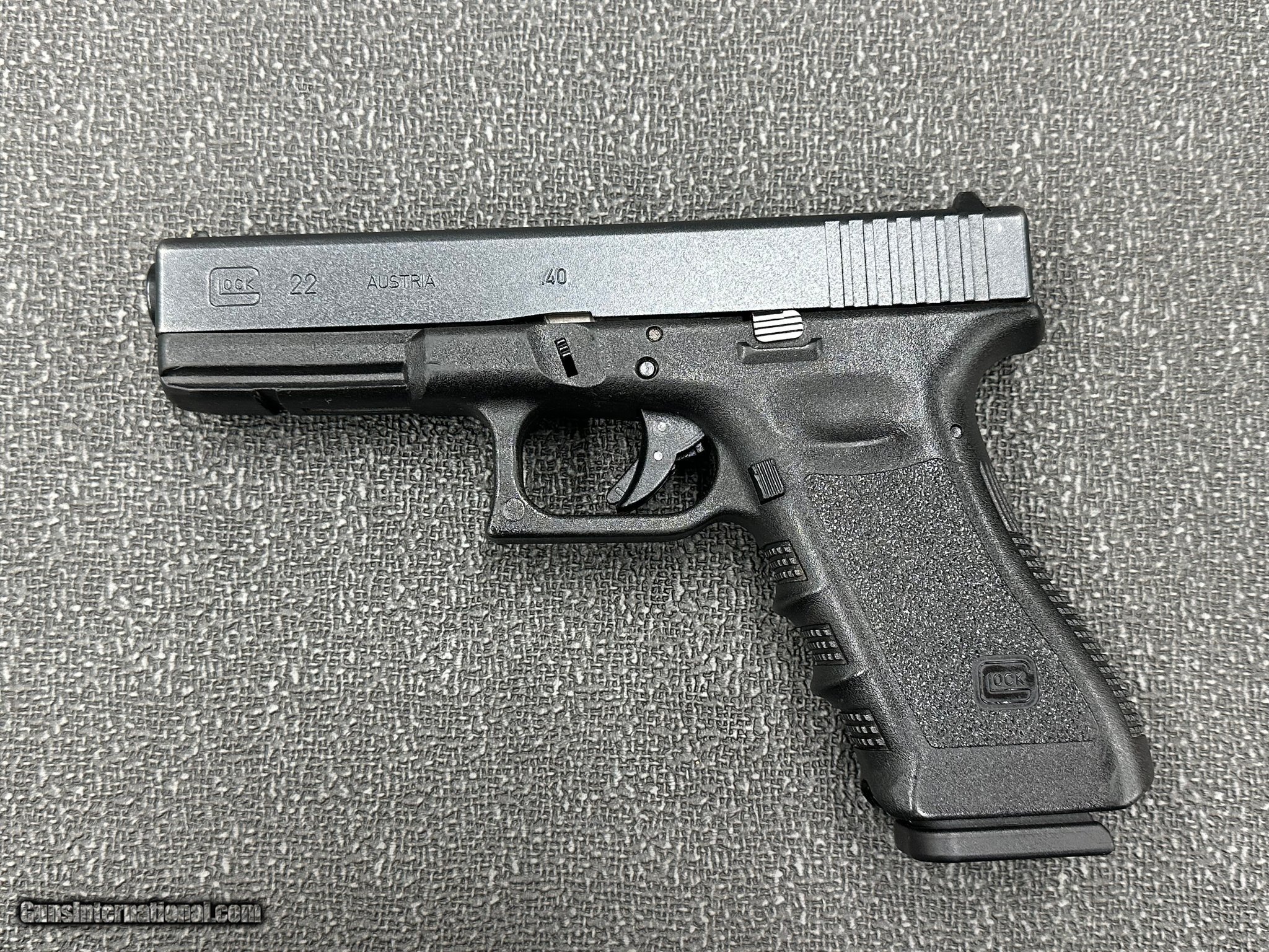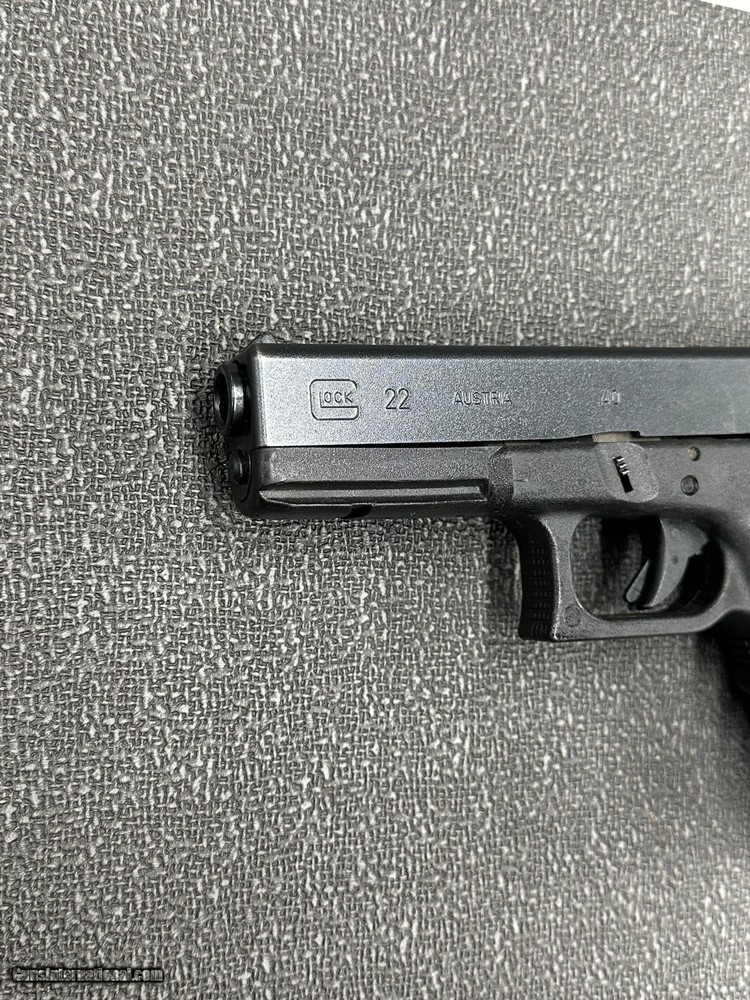 Description: Guns Listing ID: 1279427 Used Glock 22, in fair condition. A few scuffs. SOLD Manufacturer: GLOCK Model: 22 Caliber Info: .40 CALIBER Condition: Used - Non-Certified Barrels: 4.25 BARREL Finish: BLUE |