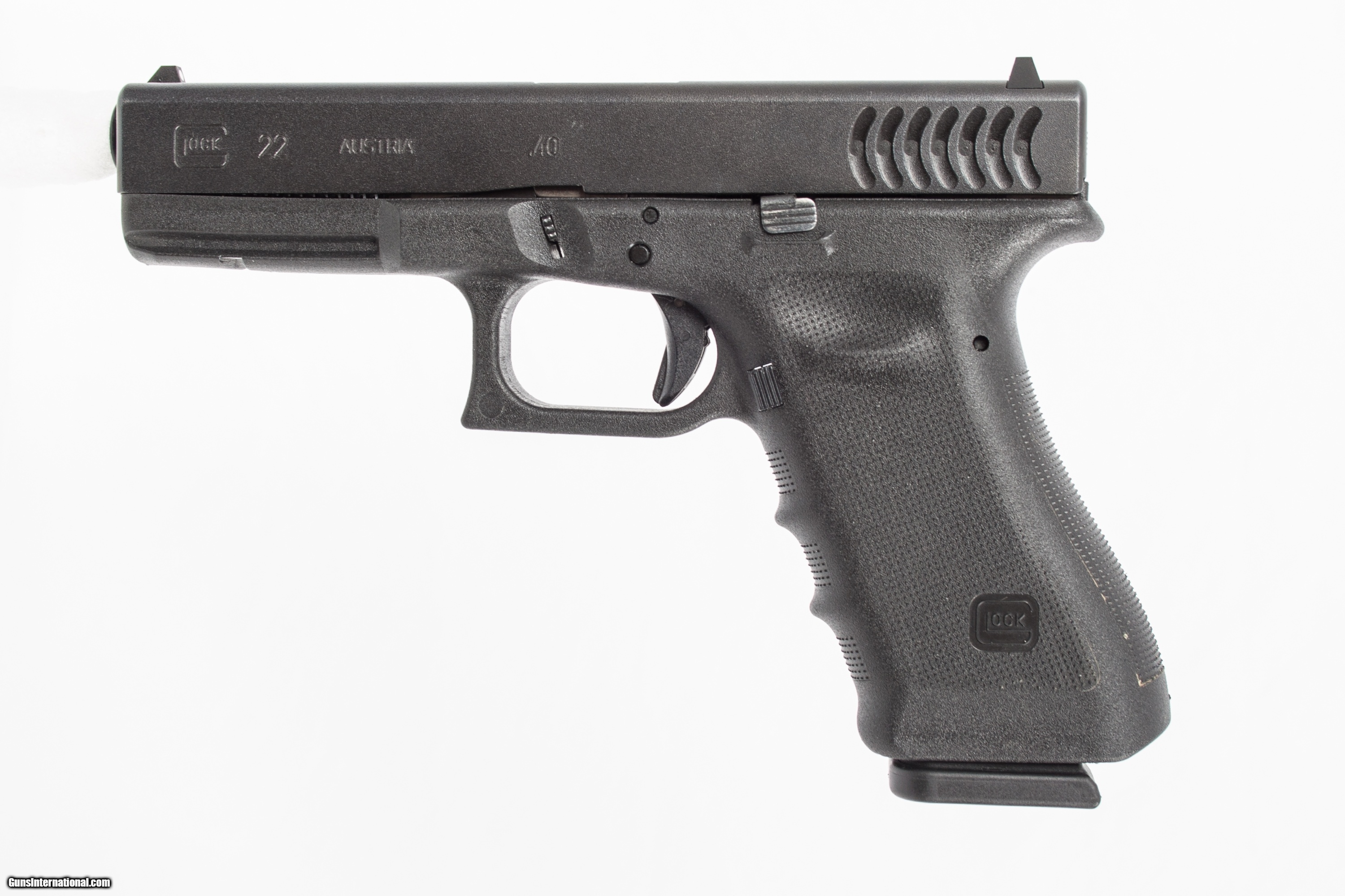 GLOCK 22 GEN 3 RTF CHAMBERED IN 40 S&W WITH A 4.5 INCH BARREL. THIS GUN IS IN EXCELLENT CONDITION AND IS COVERED BY DURY'S LIFETIME WARRANTY.
