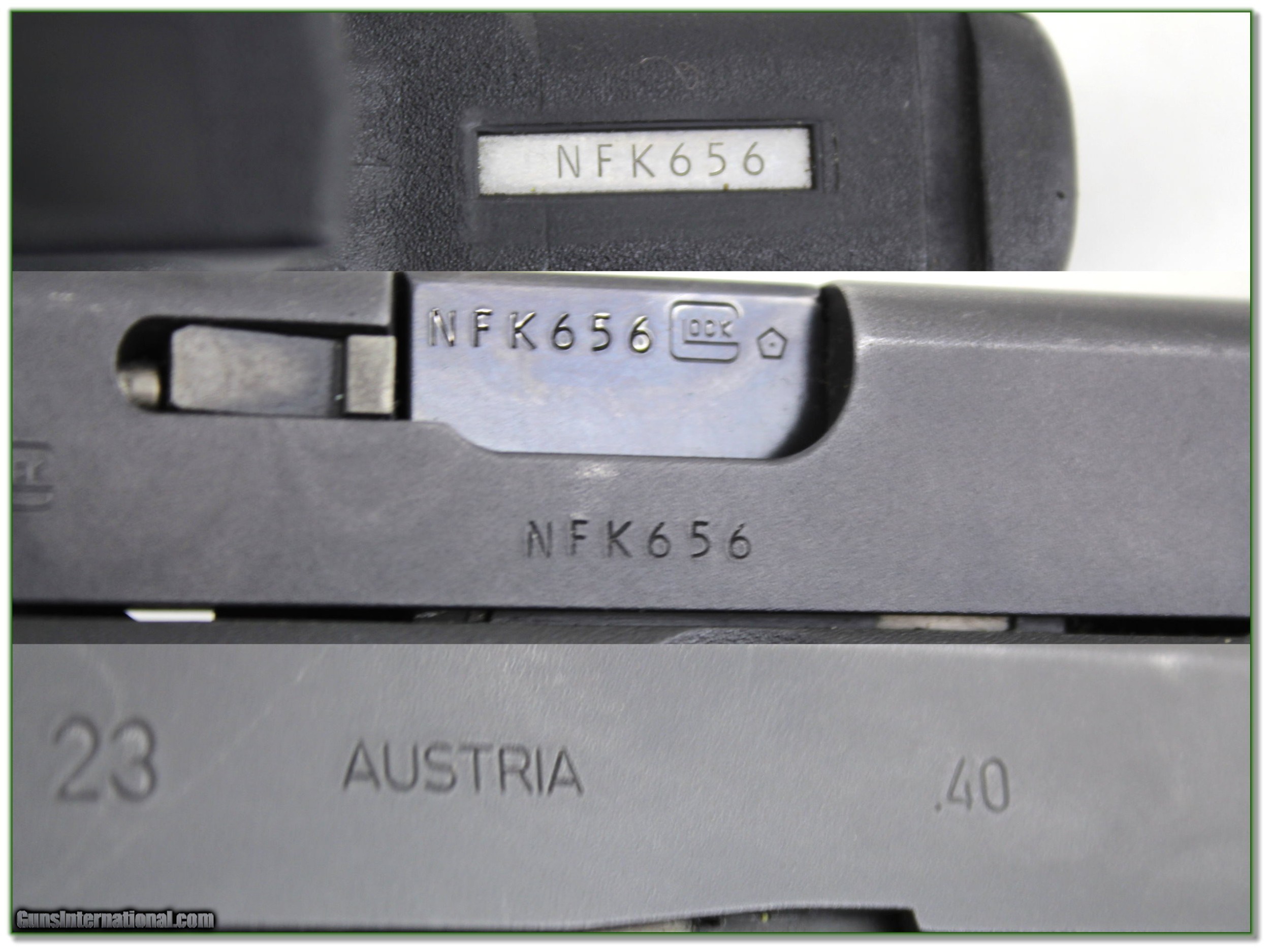 Description: This is a very nice Glock 23 Gen 3 in 40 S&W. It has 3 40 magazine. Included is an unfired 9mm barrel and 2 15 round 9mm magazines. This is like 2 guns in one! Also include is the leather holster. I am selling this one on consignment and as such lay-a-way can’t be used. It does of course have the standard 3-day inspection. Shipping and insurance is $39. Please email me with any questions or larger pictures. (Consign your quality firearms with Shooting Investments for only 12%! Let me know if you have any you would like to sell!) 21-0921 Payment: Payment is by Money Order, Cashiers Check or Personal Check. I can now also accept Credit Cards (MasterCard, Visa, Discover & American Express) with a 3% convenience fee. Shipping: The shipping charge will be listed in each description. It is $39 for most firearms. Some heavy guns or those insured for over $2000 will be higher. Shipments to Alaska and Hawaii are higher because air shipment is required. Most firearms are shipped on Tuesday and Thursday and usually in 5 days of receipt of payment. We package all shipments carefully and insure them. Optics are shipped Priority Mail and most other non-firearm shipments are shipped First Class. Returns: Our return policy is simple. If for any reason you are not pleased with your purchase, you may return your item for a full refund of purchase price. Ammunition cannot be returned. It is important to us that you are happy. Guns cannot be fired or dissembled before returning them and they must be returned in the same condition as received. Notification of a return must occur with-in 3 days of receipt at your dealer. Shipping, convenience and dealer fees are not refundable and are the responsibility of the buyer. Lay-a-way: If needed, we offer a 60 day lay-a-way option on most firearms. It is 1/3 now, 1/3 in 30 days and 1/3 in 60 days. Lay-a-way firearm sales are final and if not completed the first payment cannot be returned. Consigning your firearms with Shooting Investments: We will help you get top dollar for your firearms. While most local guns shops charge 20% or more, our fee is only 12% with a minimum of $75. At your local gun shop it might take months to sell. Selling on-line provides instant access to thousands of interested buyers. You won’t find any other on-line dealer willing to sell your firearms for only 12% or listing every gun on 3 separate s. Selling through an House typically costs the seller 15% and the buyer an addition 15% (so 30%) and you have to wait several months to sell and longer to receive funds. If properly priced, we will sell your firearms in a few weeks. Send us an email or give us a call and we’ll explain how easy it is for you to get top dollar. Trading: Trading for use is really just buying your gun to re-sell. If you have a gun you want to trade, please email a picture and we will let you know what we can give or it. You will always get more if we sell it for you on consignment. Help for California Buyers: We are happy to ship to California. It is the buyer’s responsibility to make sure any item you buy is legal in your state. We are also happy to help with your purchase of a firearm from someone other than us. If you see a gun you would like to buy but the seller can’t or won’t ship to California they can ship to use and we’ll then ship it to your California dealer. The cost for this service is only $30 + shipping. Let us know if we can help! SOLD |
