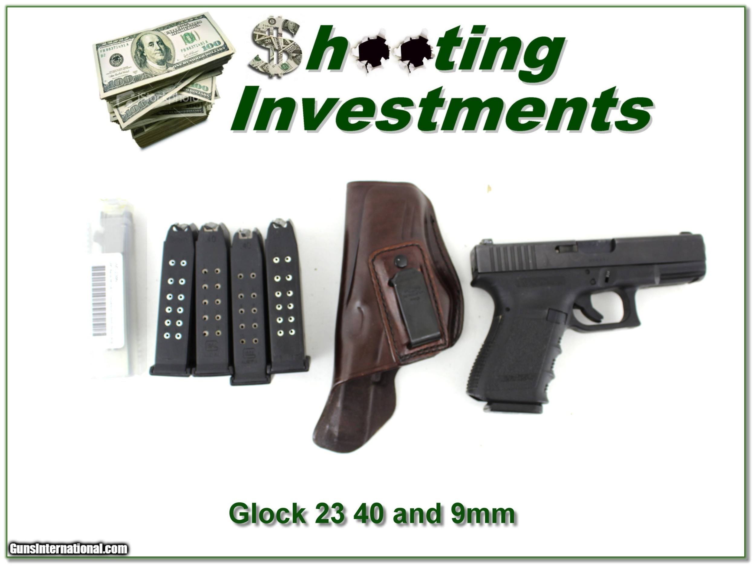 Glock 23 Gen 3 40 S&W with 9mm barrel, holster, 5 mags
