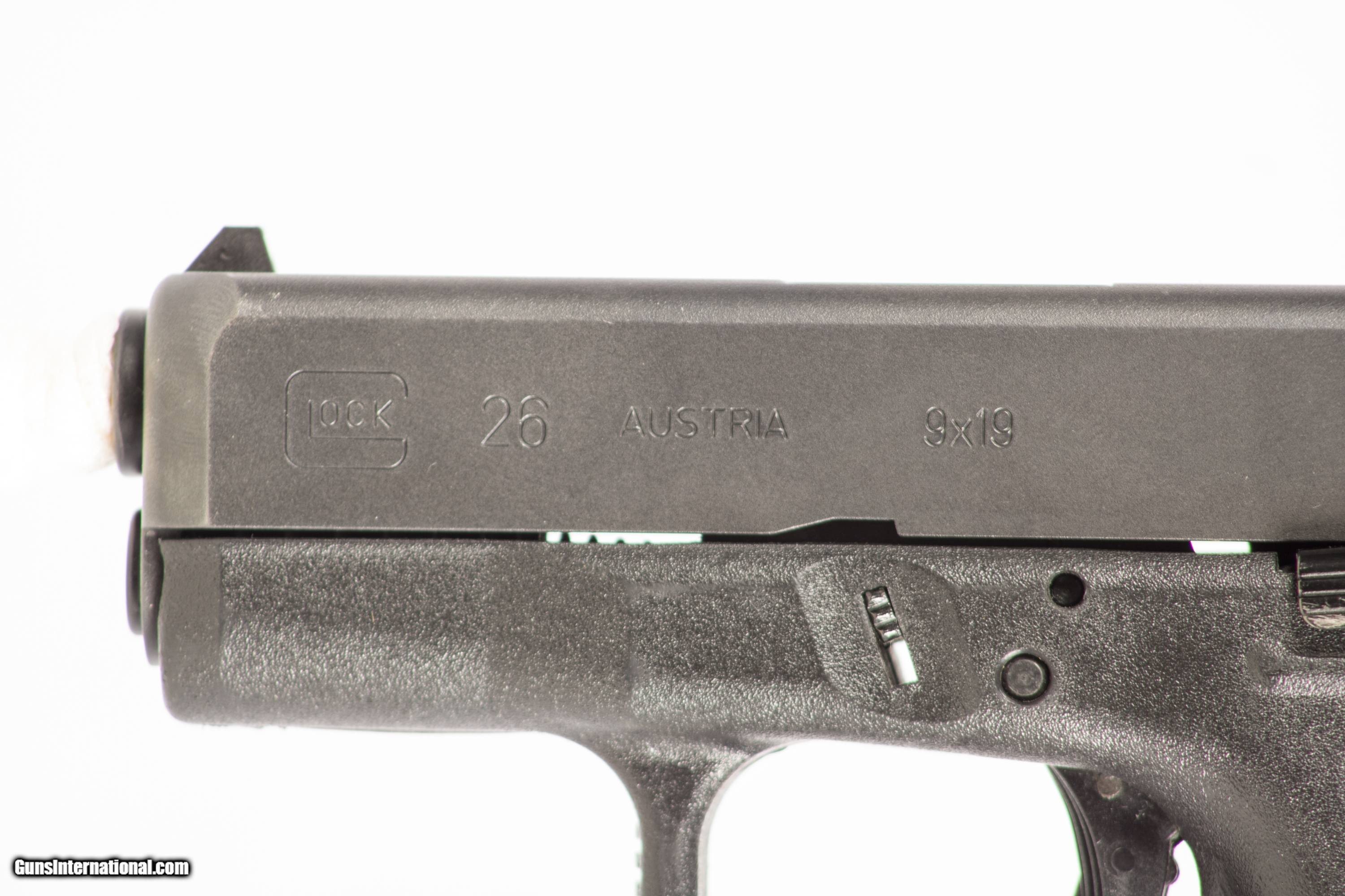 Glock 26 chambered in 9 mm with a 3 3/8 inch barrel bright & shiny bore and extra magazine. This gun is in excellent condition and is covered by Dury's Lifetime Warranty.