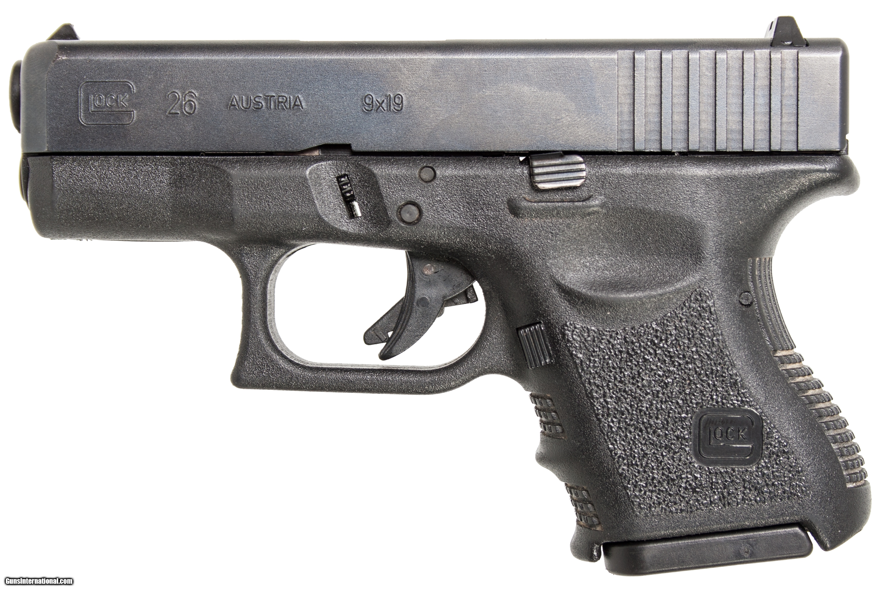 Glock 26 chambered in 9 mm with a 3.5 inch barrel and 2 extra magazines. This gun is in excellent condition and is covered by Dury's Lifetime Warranty.