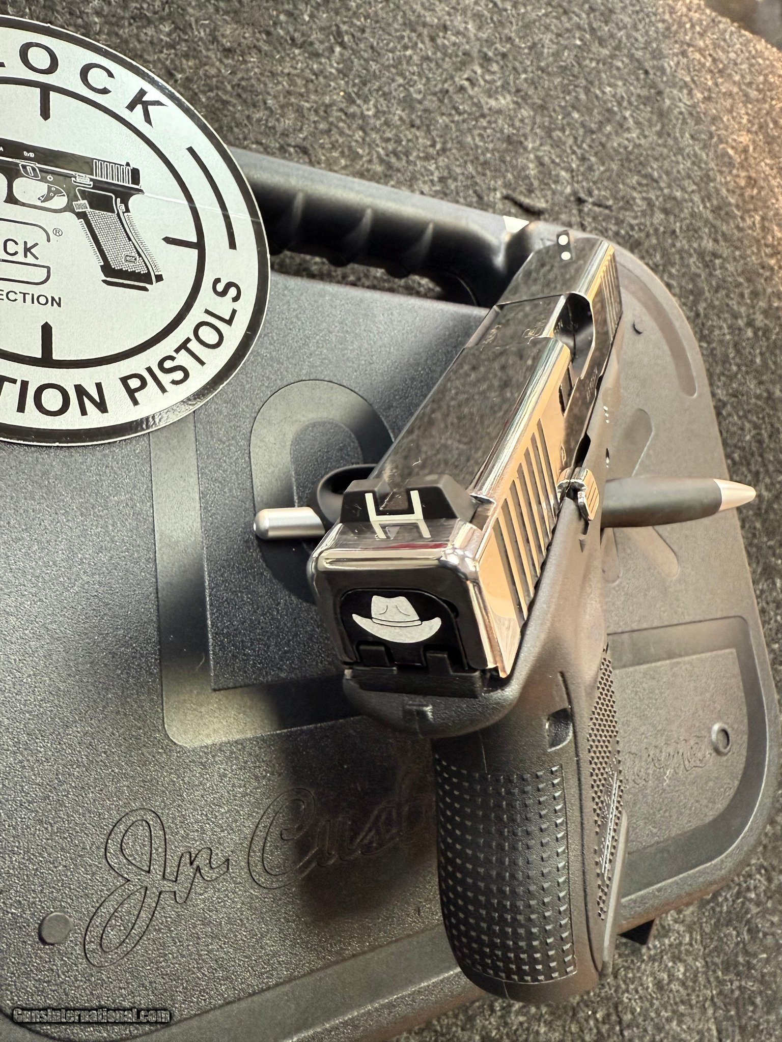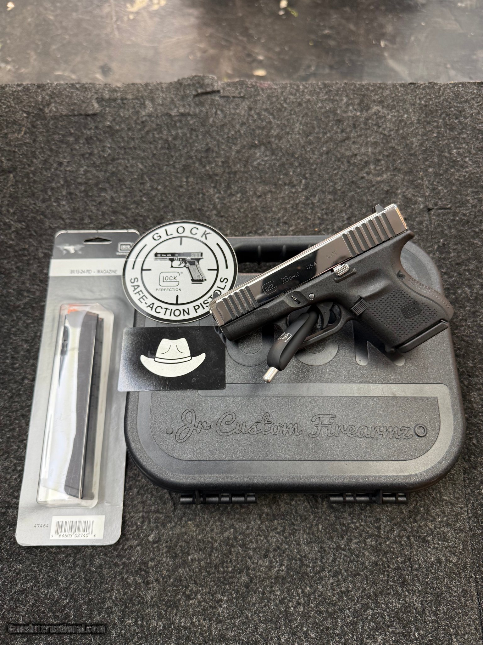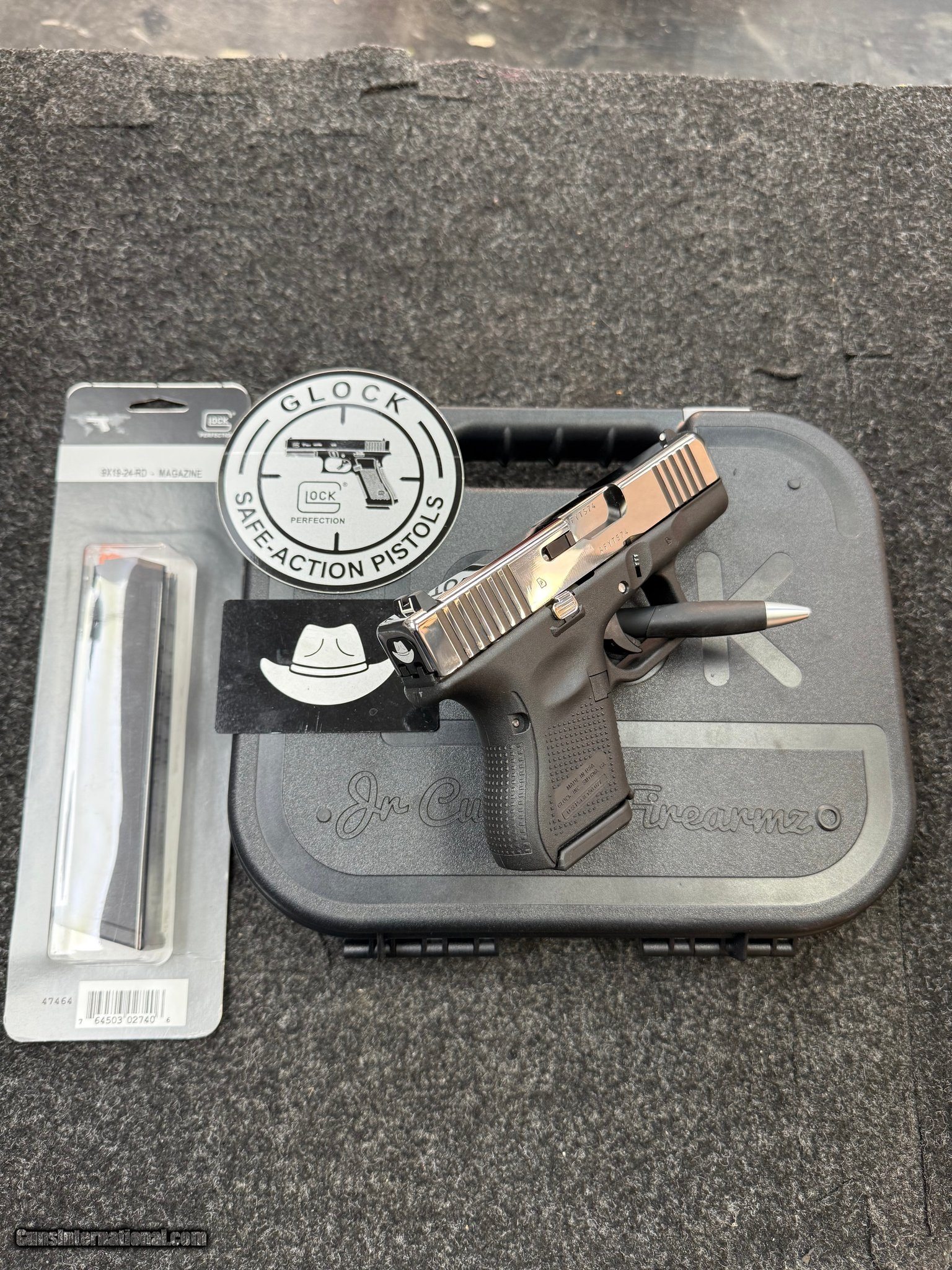 Description: Guns Listing ID: 488620 Custom Glock By JR CUSTOMFIREARMZ INSTAGRAM; JRCUSTOMFIREARMZ MIRROR FINISH GLOCK (NOT NICKEL PLATING) NO EXTENDED MAGAZINES JUST 10 ROUND/ CALIFORNIA MAGAZINES JR’s GLOCK PACKAGE ACCESSORIES INCLUDED Similar in size and weight to the small-frame snub-nose revolvers it has replaced, the GLOCK 26 fires the popular 9 mm Luger cartridge with minimum recoil and more on-target accuracy at a fast rate of fire. It’s an ideal backup for those who use the GLOCK 17 or GLOCK 19 for open carry, even more so since the larger 9mm magazines fit the G26 as well. SOLD Manufacturer: GLOCK Model: 26 Gen 5 Chrome Condition: Used - Non-Certified Barrels: 3.4 Gauge Info: 9MM LUGER (9x19 PARA Finish: chrome |