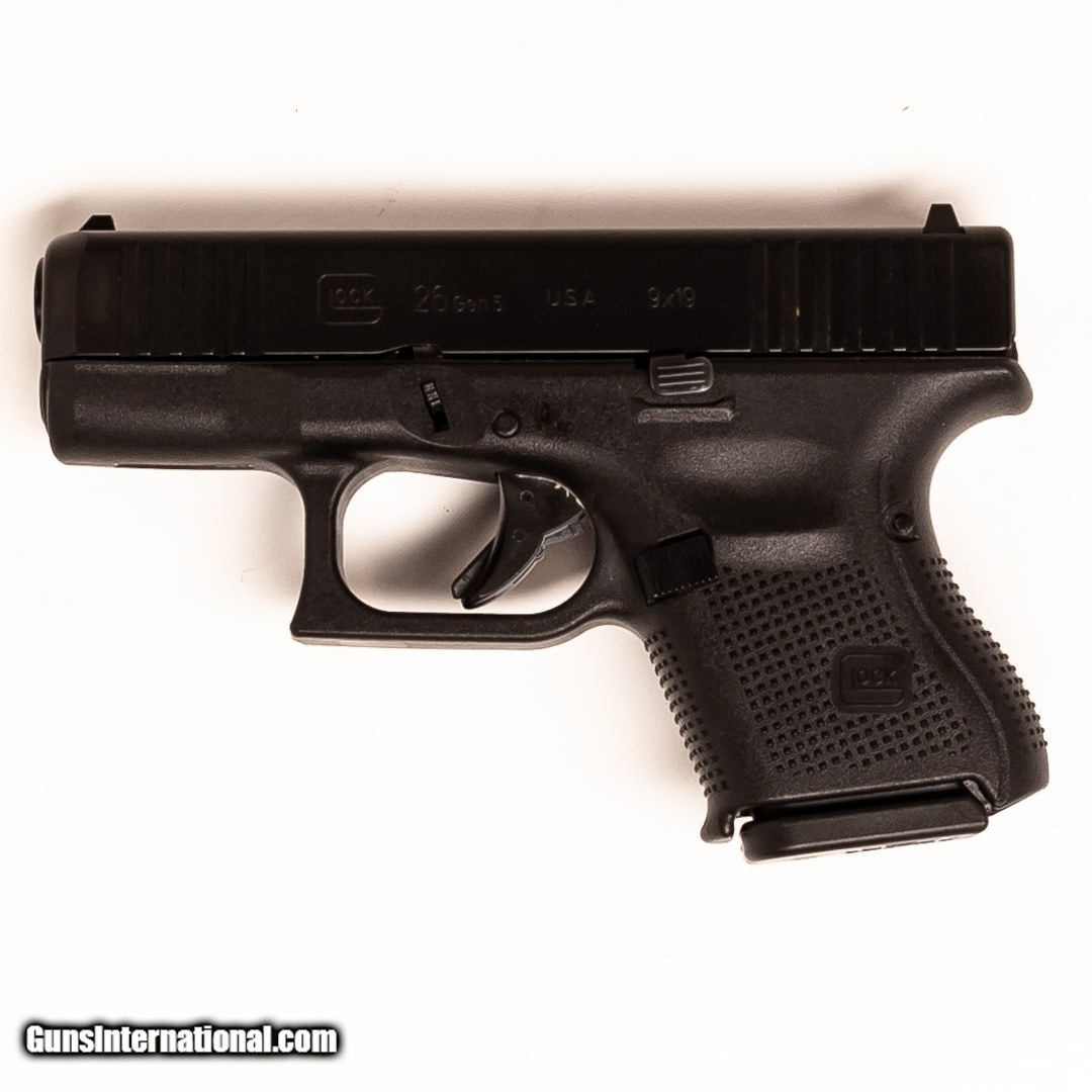 Description: Guns Listing ID: 635546 Also known as the \"Baby Glock,\" the Glock 26 is a sub-compact, semi-automatic handgun that‚‚s highly accurate and dependable. It has remained one of the most popular carry options since its initial introduction. In addition to offering Glock‚‚s signature polymer frame, features include a stippled grip, flared magwell, and ambidextrous slide stop levers. This G26 Gen 5 includes the original hard case, manual, three 10-round magazines, and Glock bold sight SOLD Manufacturer: GLOCK Model: 26 GEN5 Caliber Info: 9MM LUGER (9X19 PARA) Condition: Used - Certified Barrels: 3.4 barrel Finish: BLACK |