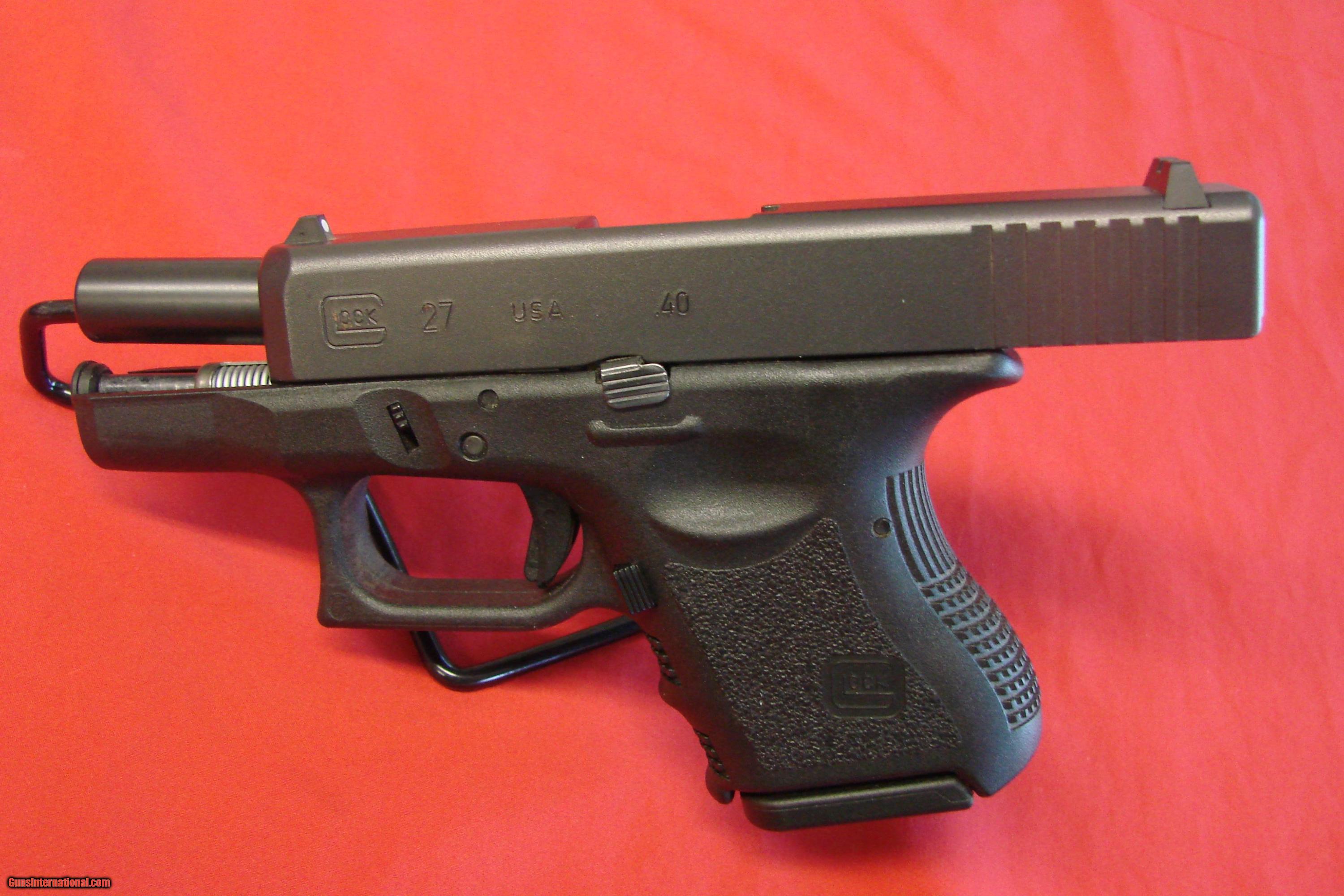 Description: Glock 27 Gen 3, .40 S&W, Sub-compact. Comes with original case, cleaning kit, extra magazine, speed loader, Fixed iron sights. Recessed thumb rests, finger grooves, no mounting rail. Jim's Firearm Repair and Sales is Rhode Island's fastest growing retail and gunsmith store. We specialize in all things firearms-we are RI's largest in-house gunsmith servicing both to the public and law enforcement. Visit us on-line, in person or on our Facebook page. SOLD Manufacturer: Glock Model: 27 gen 3 Sub-Compact Serial Number: AAFH752 Caliber Info: .40 S&W Condition: very good Metal Condition: very good Action: semi auto |
