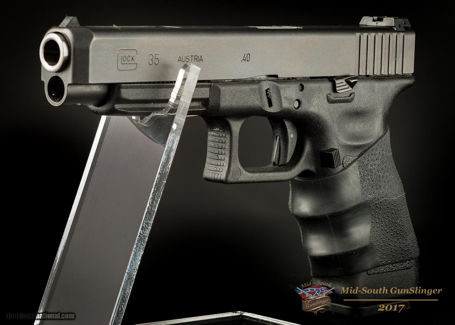 Description: Presented for sale, you will find a Glock 35 with a Lone Wolf Match barrel chambered in 40 S&W. This pistol easily rates NRA Excellent. Like many guns from this collection, it has seen little if any use. Please look at the images. The images will illustrate this Glock 35 much better than I can describe. Included in the listing is the pictured Glock 35, one (1) fifteen (15) round magazine and the OEM case. This pistol will ship via FedEx Express Standard Overnight to the lower 48 for $49.95. Thank you for looking. Our phones are answered 24/7 by a human that speaks English. Mid-South GunSlinger Will Sell Your Guns for You!!!