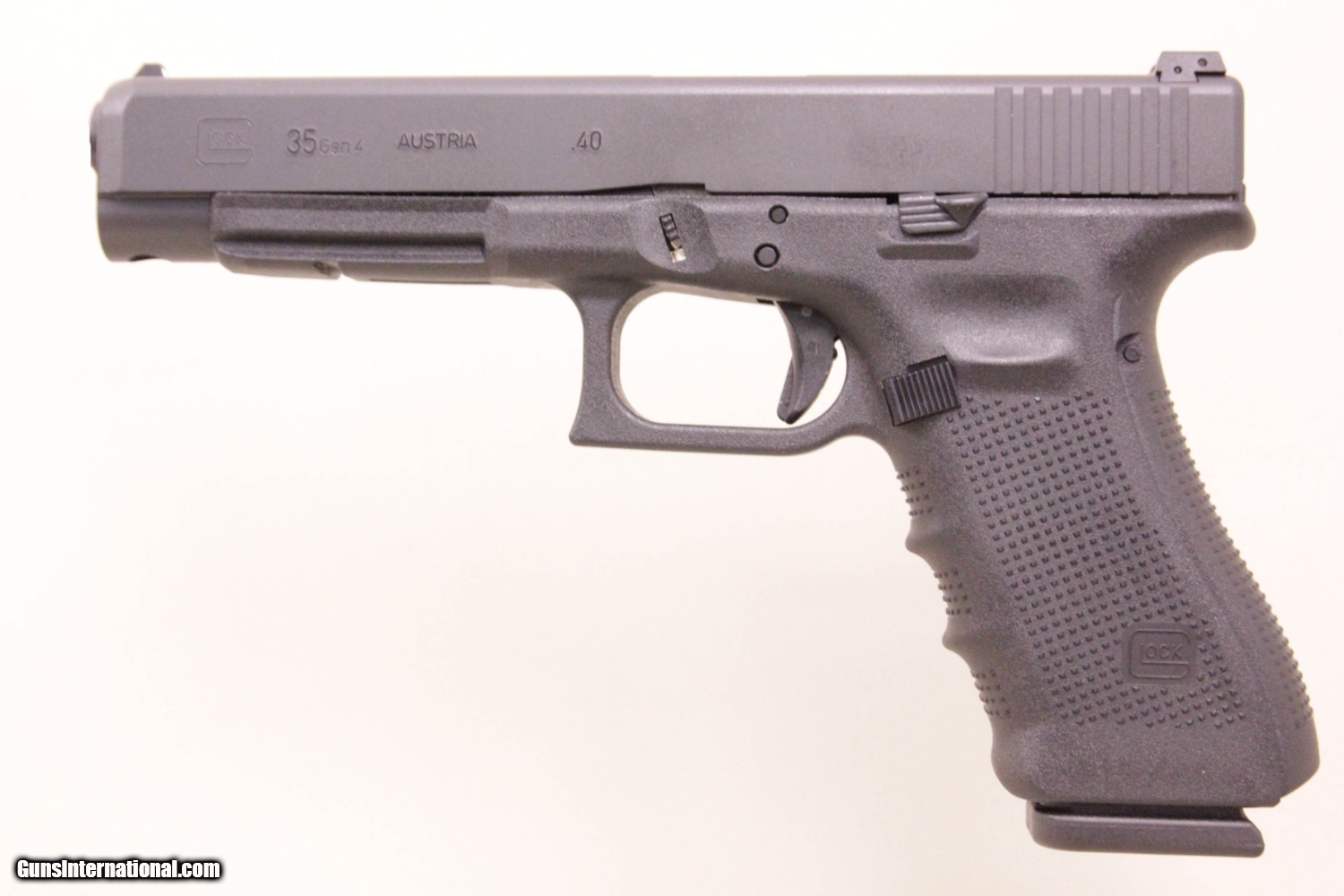 GLOCK 35 GEN4 40 S&W, 5 inch barrel, fixed sights two extra magazines and case. This gun is in excellent condition and is covered by Dury's Lifetime Warranty.