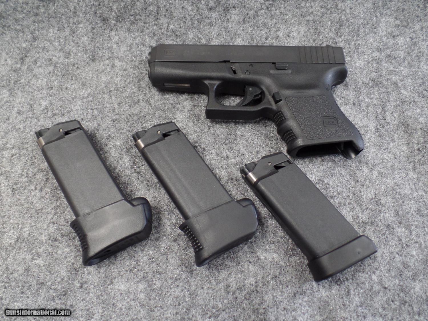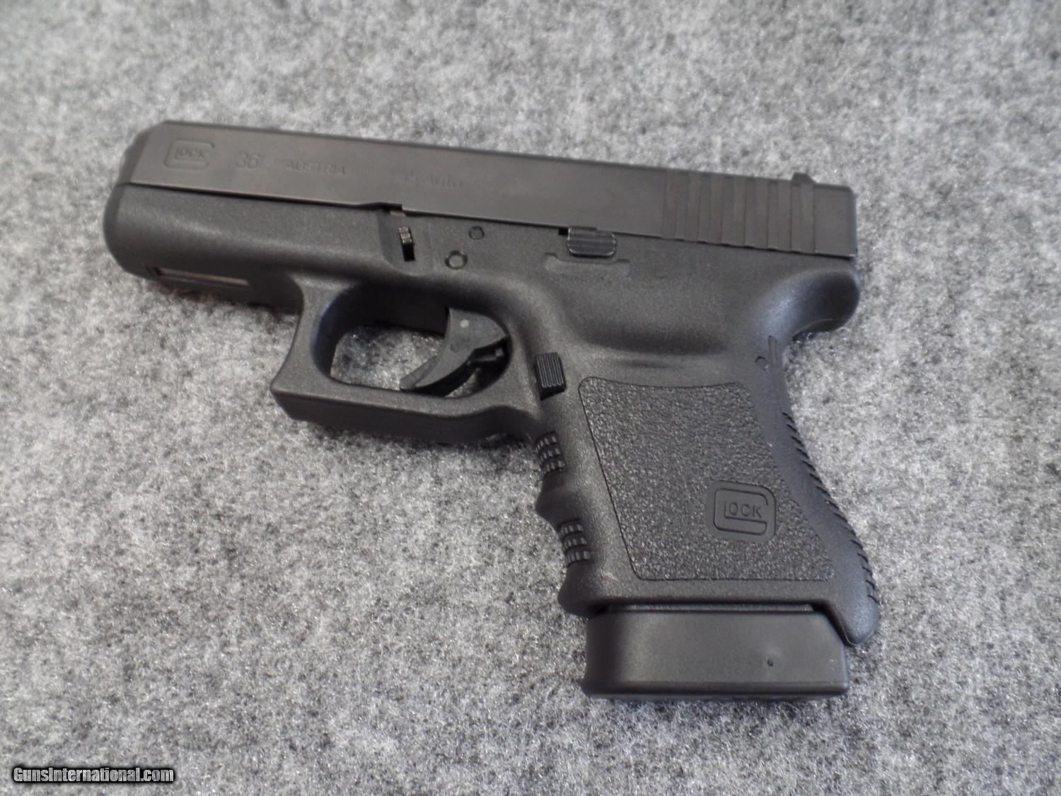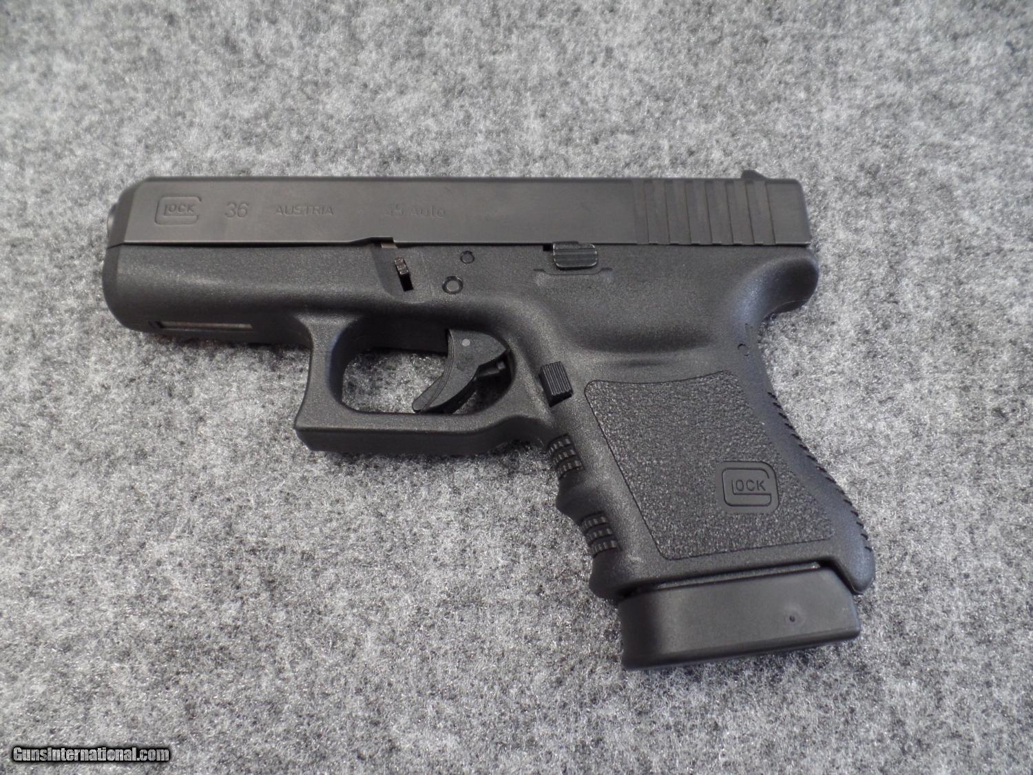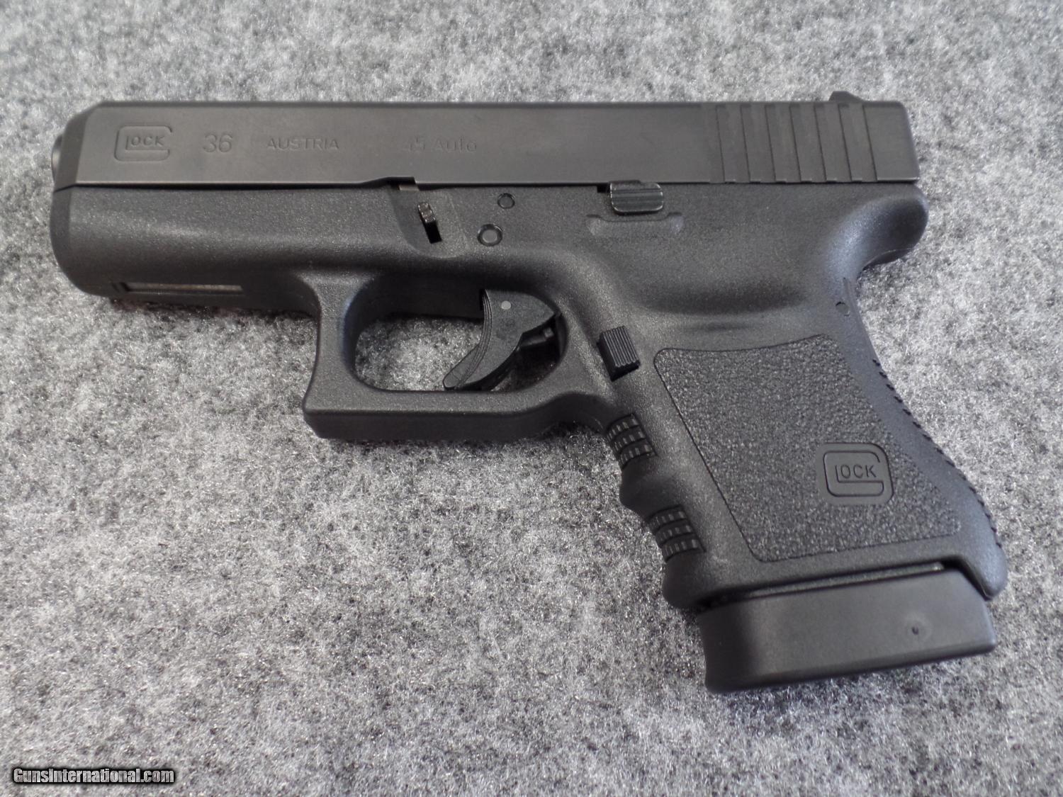 Description: GLOCK Model 36 Handgun .45ACP This Glock 36 is in like neused condition (like new condition but used). Excellent condition. It comes with the original box, 3 magazines and all the papers. Two of the magazines have the large extensions installed. SPECS: MANUFACTURER: Glock MFG PRODUCT #36 CONDITION: USED ACTION: Semi Auto CAPACITY: 6 + 1 CALIBER: .45ACP SIGHTS: Standard Fixed GRIP: Polymer Frame TRIGGER: Standard BARREL LENGTH: 3.77” OVERALL LENGTH: 6.96” WEIGHT: 27 oz loaded / 22.42 unloaded COMES WITH: 3 magazines (2 include extensions), papers and original box. MADE IN: Austria SERIAL# WLL1XX Please see pictures and feel free to ask questions. USA SHIPPING ONLY PAYMENT: We only accept the following methods of payment: Postal Money Order & Certified Bank Check SHIPPING: ALL FIREARMS ARE CHARGED A FLAT $35.00 shipping No International Shipping, USA Shipping Only SALES TAX: 6% for Georgia Residents will be added to invoice We do not ship firearms to CA, DC, MA, MD, NY & Chicago, IL We do not ship magazines / guns in excess of 10 Rds to CA, NYC, Washington DC or 10 Rd pistol magzines to HI 12 Rds to Chicago, IL or 15 Rds to CO and NJ and 20 Rds to MD (see additional municipalities below if applicable*) FIREARM SALES: A signed copy of the Federal Firearms License of the dealer you wish your item to be shipped to will need to be submitted with your payment within 10 days of close of sale. ORDER INSTRUCTIONS: If you wish to purchase please call the phone number listed or send us an email with the following information: