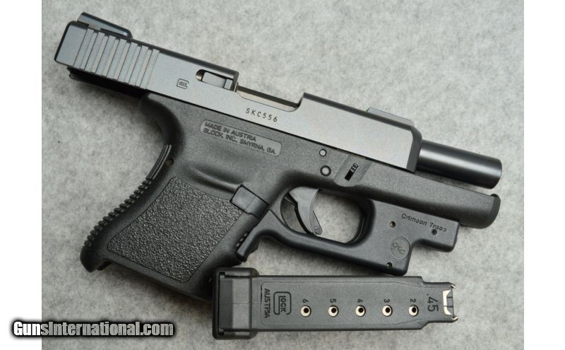 Description: SOLD Caliber Info: .45Auto Chambers: 6 Rounds Metal Condition: Excellent Bore Condition: Excellent Barrels: 4 Inches Triggers: Factory Weight: 1 Pound 7 Ounces Sights: 3 Dot Green Fiber Rod Crimson Trace Extras: Box, Mag, Tools Item Location: Noblesville, IN |