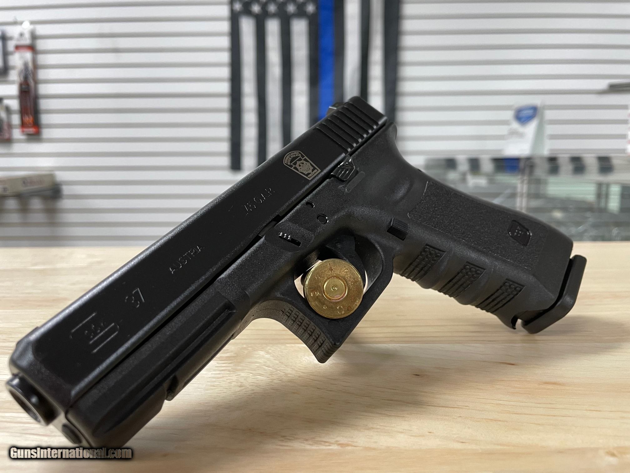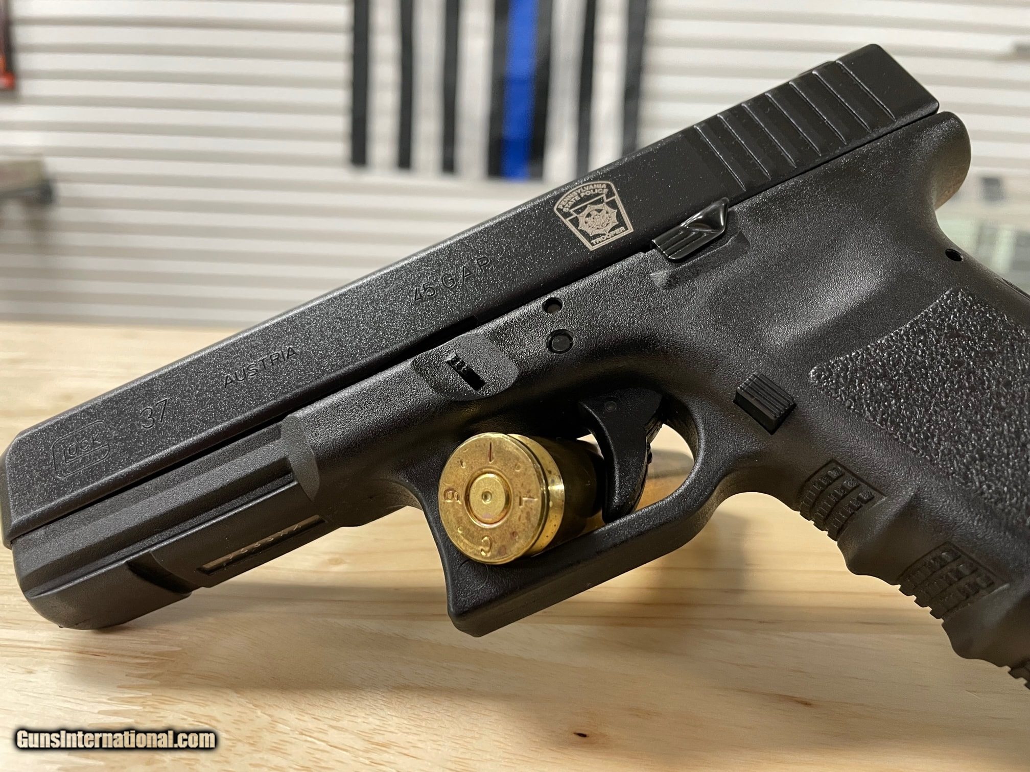 Description: Guns Listing ID: 396917 This Glock 37 Gen 3 is chambered in 45 GAP (Glock Auto Pistol) also referred to as 45 Glock. This round was created so that the shooter could utilize a large bore .45 caliber bullet in a smaller casing to fit smaller framed firearms, all while maintaining the approximate equivalency in ballistics and performance. This handgun is an LEO Pennsylvania State Police trade-in and it includes 2 of the three 10-round magazines and the original case. SOLD Manufacturer: GLOCK Model: 37 G37 GEN 4 NIGHT SIGHTS Caliber Info: 45 GLOCK AUTOMATIC PISTOL (GAP) Condition: Used - Non-Certified Barrels: 4.49 BARREL Finish: BLACK |