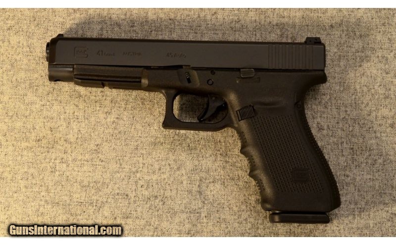 Description: This is a pre-owned Glock 41 Gen 4 in .45 ACP SOLD Caliber Info: .45 ACP Metal Condition: Very good with a few small scratches Wood Condition: Very good with a few small scratches Bore Condition: Clean with bright lands Barrels: 5.3 Stock: Textured polymer Weight: 1.7 Lbs.` Sights: Dot front, adjustable white outline rear Extras: Comes with the factory box, manual, magazine loader and three 13 round magazines Item Location: Glendale, AZ |
