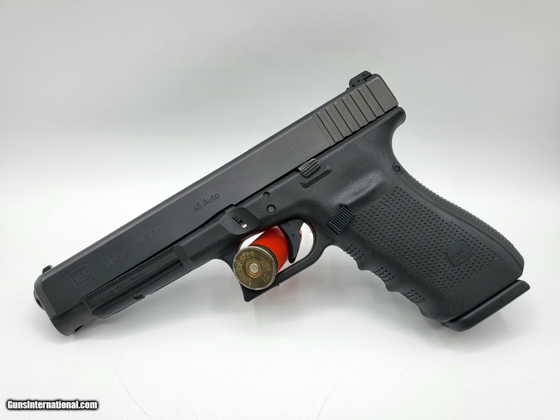 Description: Guns Listing ID: 1251515 This is a pre-owned Glock 41 Gen 4 in excellent condition with some user wear and hardly any storage wear, this pistol comes with a 13+1 round magazine in .45 ACP only. I#0824705 UEM AG SOLD Manufacturer: GLOCK Model: 41 GEN 4 Caliber Info: .45 ACP Condition: Used - Non-Certified Barrels: 5 BARREL Finish: MATTE BLACK |