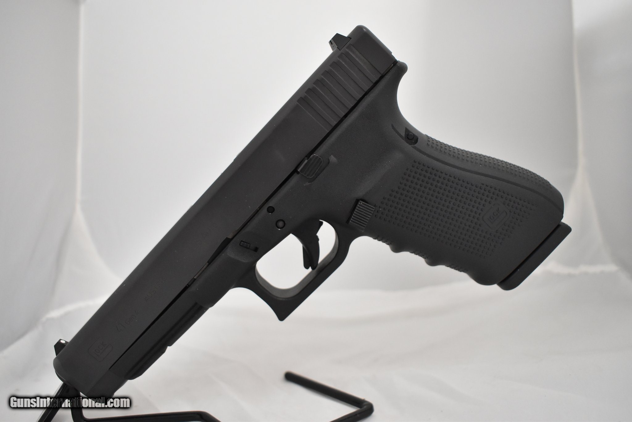 Description: Guns Listing ID: 1309759 Like new in box. Comes in the original box w/ 3 - 13rd magazines, mag loader, 4 backstraps, lock, cleaning rod/brush, & manual. SOLD Manufacturer: GLOCK Model: 41 GEN 4 Caliber Info: .45 ACP Condition: Used - Non-Certified Barrels: 5 BARREL Finish: BLUE |