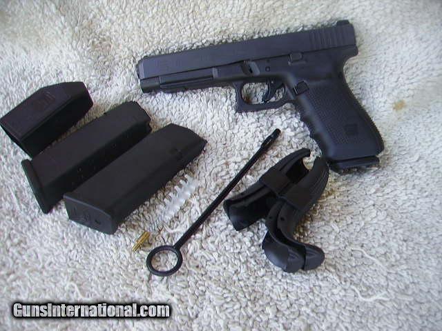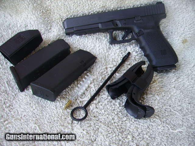 Description: New in box, 3 extra clips, loader, extra grips, cleaning assembly, plastic case included. Priced at cost. SOLD Manufacturer: Glock Model: 41 Gen 4 Serial Number: YEV367 Caliber Info: .45 ACP Condition: New in box |
