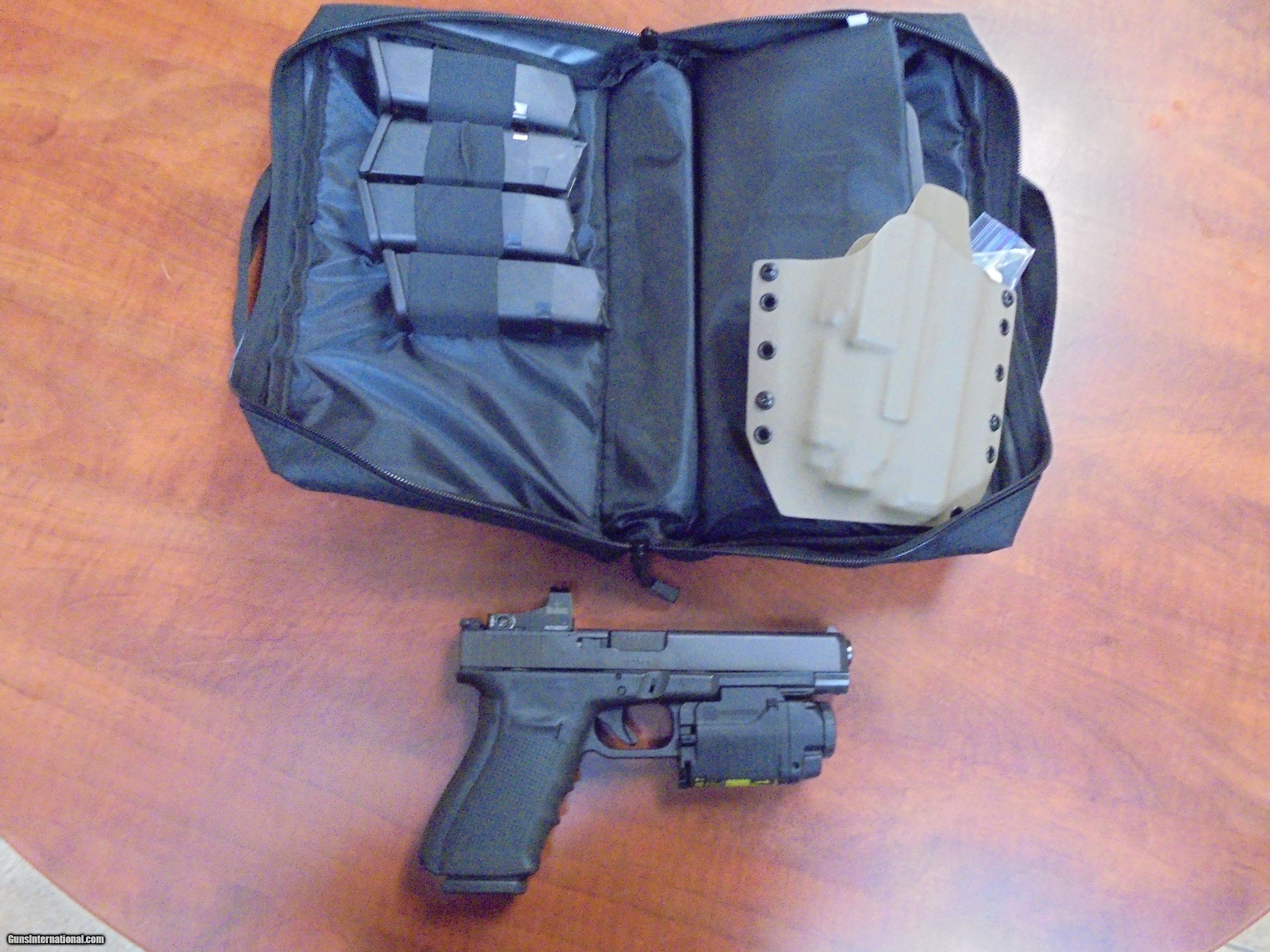 Description: USED VERY GOOD CONDITION GLOCK 41 45 ACP WITH EXTRAS -- GLOCK PISTOL BAG, GLOCK LIGHT/LAZER COMBO, BURRIS FAST FIRE III TOTAL OF 12 - 13 RND MAGS, FACTORY CASE AND HOLSTER TO FIT WE DO NOT SHIP FIREARMS AND/OR FIREARMS’ PARTS OUT OF THE 50 UNITED STATES, SO DON’T ASK PRICE REFLECTS PAYMENT BY MONEY ORDER / CASHIERS CHECK. A 3% PREMIUM IS ADDED FOR CREDIT CARDS. WE DO OFFER A LAYAWAY PLAN. YOU CAN LAYAWAY FOR 30, 60, OR 90 DAYS. THERE IS A $5.00 CHARGE FOR EVERY 30 DAYS ITEM IS ON LAYAWAY. WE ALSO REQUIRE A 20% DOWN PAYMENT ON LAYAWAY ITEM. LAYAWAYS ARE NON REFUNDABLE. DOMINION OUTDOORS 15 ANGELA COURT FISHERSVILLE ,VA 22939 540-337-9218 540-337-2422 fax HERE IS HOW THIS PROCESS WORKS. YOU WOULD CALL US AT 540-337-9218 WITH LISTER # TO PURCHASE THE GUN. THEN ONCE I HAVE RECEIVED PAYMENT AND AN FFL (FEDERAL FIREARMS LICENSE) FROM A LICENSED DEALER IN YOUR AREA OF YOUR CHOICE, I WOULD THEN SHIP THE GUN TO THEM. YOU WOULD THEN PICK UP THE GUN AT YOUR LOCAL DEALER AND DO PAPER WORK THERE. *PLEASE CALL IN THE WITH THE LISTER INVENTORY NUMBER* ***PLANO HARD CASES AVAIABLE FOR PURCHASE $18.99 WITH THE PURCHASE OF A FIREARM.** SOLD |