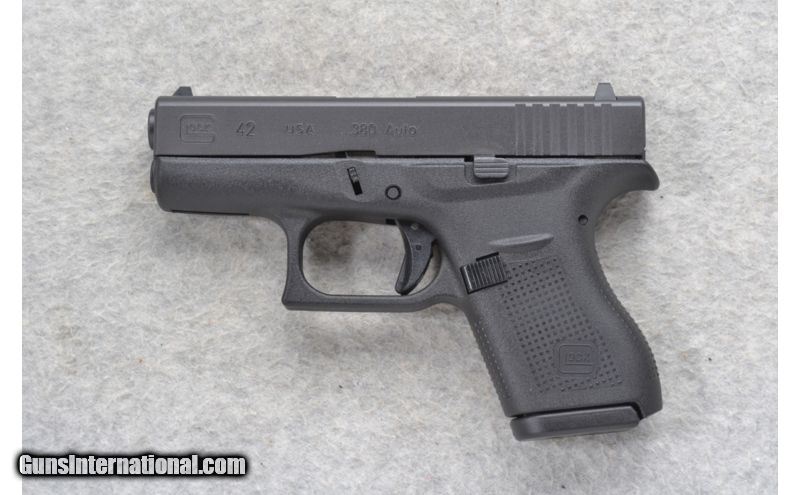 Description: Glock 42 a great conceal carry pistol in .380 cal. comes with its original Glock black plastic hard case, Instruction Manual, two 6 shot magazines (total) and a cleaning rod with brush. This gun has polygonal rifling with a right-hand twist. SOLD Manufacturer: Made in U.S.A. Caliber Info: .380 Auto Chambers: 6 shot magazine. Metal Condition: Excellent. Bore Condition: Excellent. Barrels: 3 inches with a matte black slide. Triggers: Squared off trigger guard. Stock: Textured grip black polymer grip. Weight: 14 oz. Sights: Blade front. Notch rear. Both have white. Item Location: Richfield, WI |