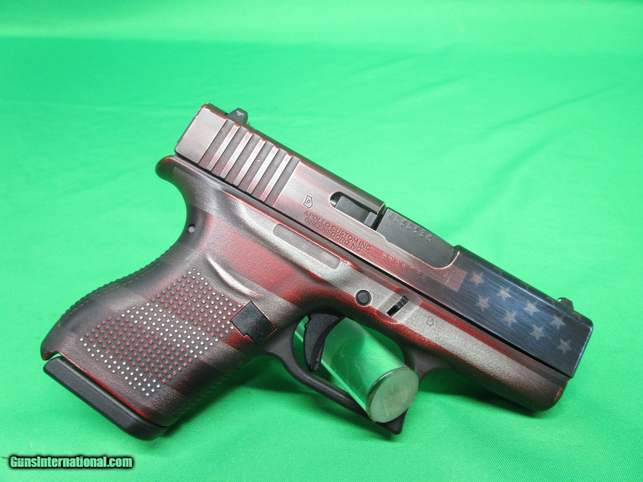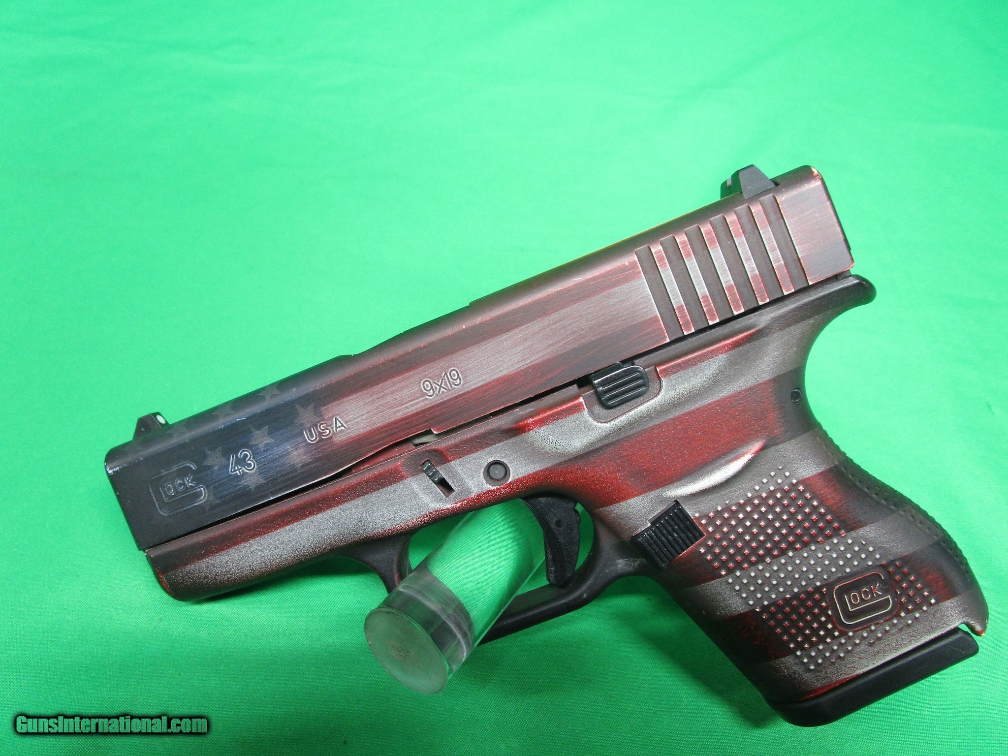 Description: Guns Listing ID: 1074865 We have a used Glock 43 semi-automatic pistol for sale. This is chambered in 9mm with a 3.41\" barrel. It comes as shown in pictures with one magazine and a battle worn American flag cerakote. This is in Good Used Condition. Overall we would grade at approx 95% with light holster wear. Check out the pictures and feel free to call or email with any questions. SOLD Manufacturer: GLOCK Model: 43 Caliber Info: 9MM LUGER (9X19 PARA) Condition: Used - Non-Certified Barrels: 3.41 BARREL Finish: AMERICAN FLAG |