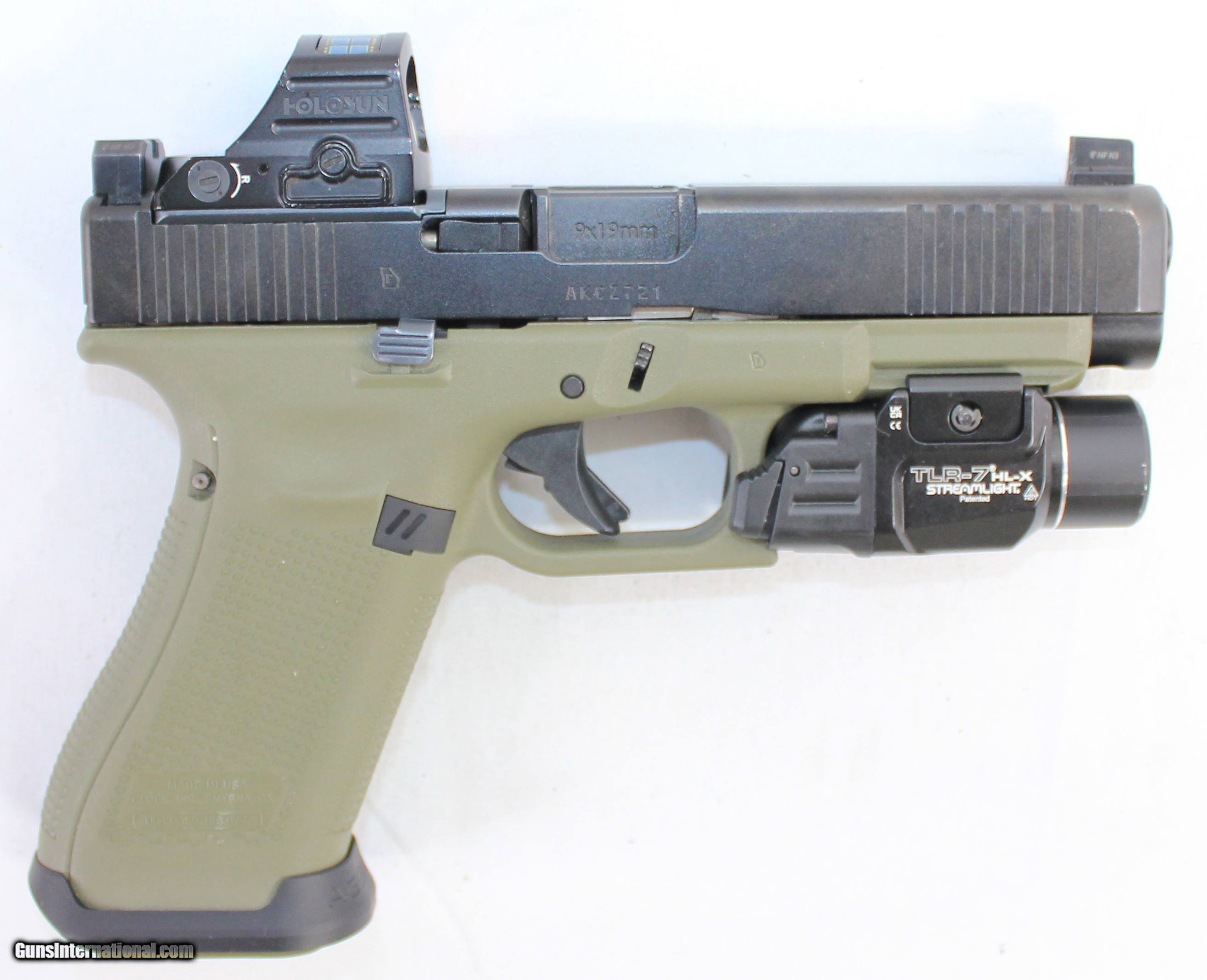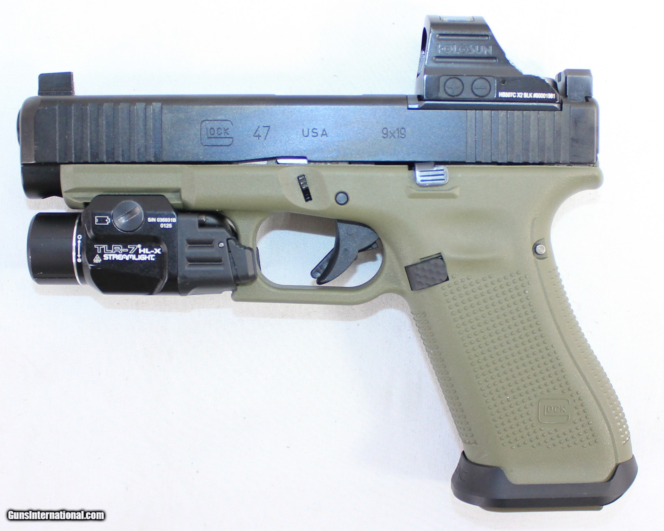 GLOCK 47 GEN 5 MOS 9MM 4.5" GREEN W/ HOLOSUN 507C-RD, NOVESKE BBL, SL TLR-7 HL-X, HOLSTER