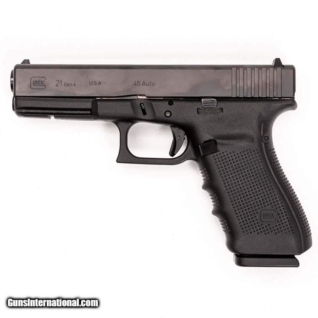 Description: Guns Listing ID: 332717 The Glock 21 Gen 4 is a full-size striker-fired handgun chambered in .45 ACP. Perfect for duty use, self-defense, and tactical applications, the G21 has a legendary reputation for being solid and dependable. It features Glock's Safe Action Trigger and ships in the original case with 3-13 round magazines, backstraps, and a manual. SOLD Manufacturer: GLOCK Model: G21 GEN 4 Caliber Info: .45 ACP Condition: Used - Certified Barrels: 4.5 BARREL Finish: BLACK |