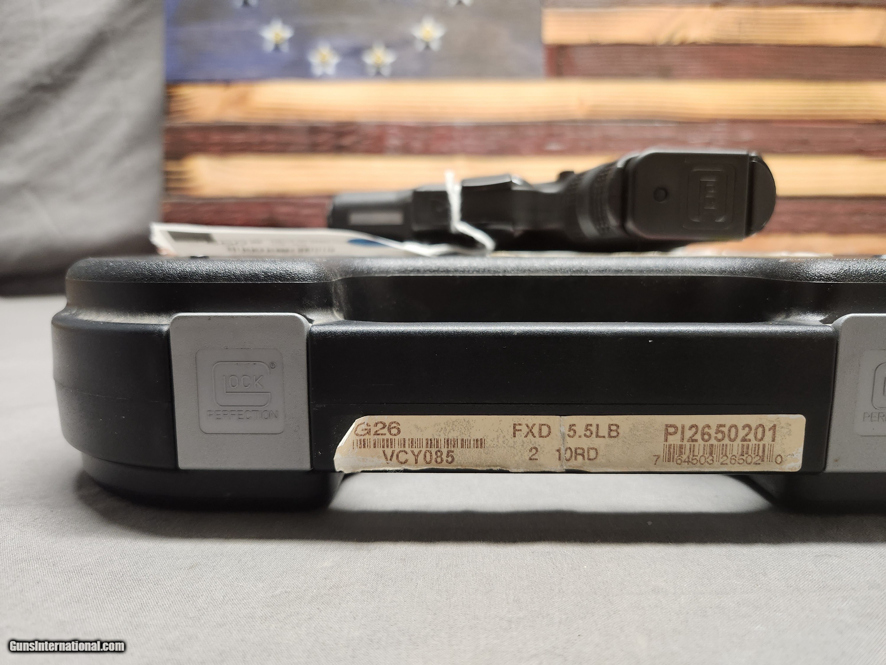 Description: Up for sale is a Glock 26 9MM two 10rd Mags with box. Over all 95% We review all offers. Shipping on all handgun $45.00 Shipping on Long gun long $125.00 Please review all photo's as we do our best to take photos of all imperfections of the firearms. To purchase a firearm from us we need you to do the following. 1. Send an e-mail stating that you would like to purchase the firearm. Please include your name, address, and phone number. We also need to know how you will be paying for the firearm, Cashier’s Check, Money Order, Personal Check, or Debit/Credit Card up charge on Debit/Credit Card 3%. We also need the FFL Dealer's Name and Phone number we will be shipping the firearm to. After we receive this information, we will e-mail you over the invoice with the total due. If payment is not received within 5 business days the firearm will be relisted. Thank you for looking! Ron SOLD Handgun Caliber: 9x19mm Parabellum (9mm Luger, 9x19mm NATO) Manufacturer: Glock Model: 26 Serial Number: VCY085 Condition: 90 |