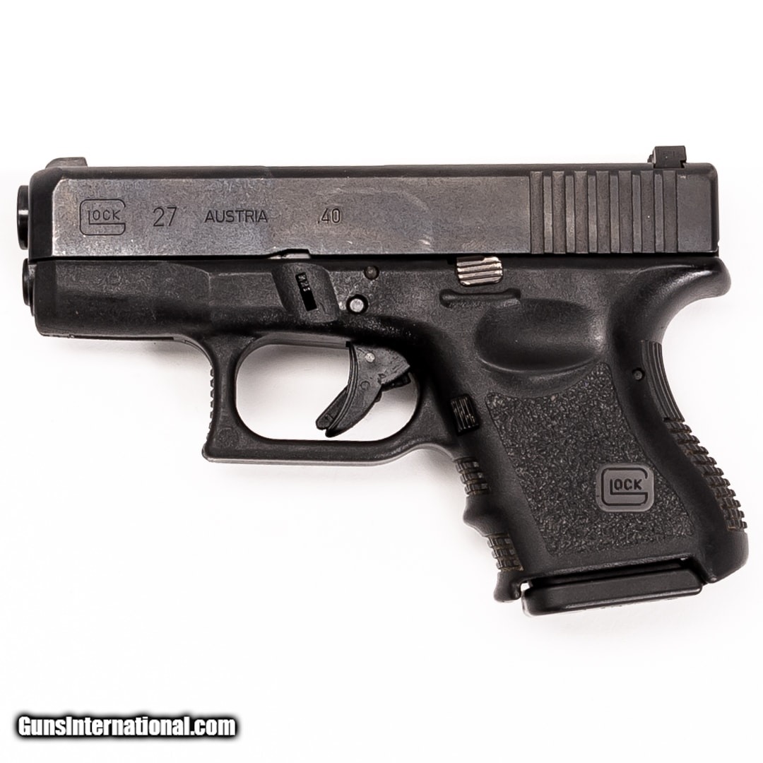 Description: Guns Listing ID: 328404 Compact and perfect for daily carry, the Glock 27 is chambered in .40 S&W. This reliable pistol is popular among law enforcement and civilians alike. 5 X 9 round magazines and the original case are included. SOLD Manufacturer: GLOCK Model: G27 Caliber Info: .40 S&W Condition: Used - Certified Barrels: 3.4 barrel Finish: BLACK |