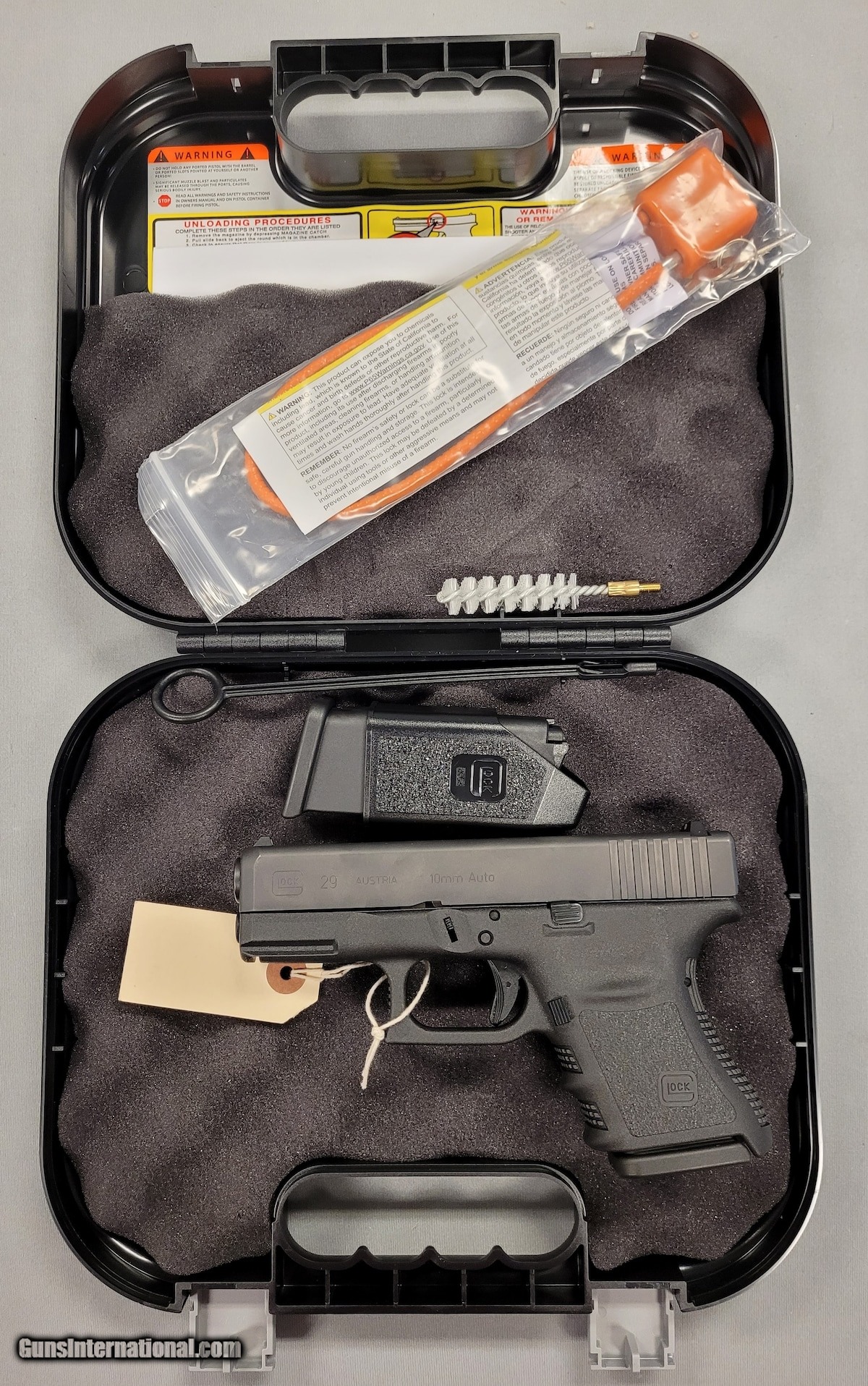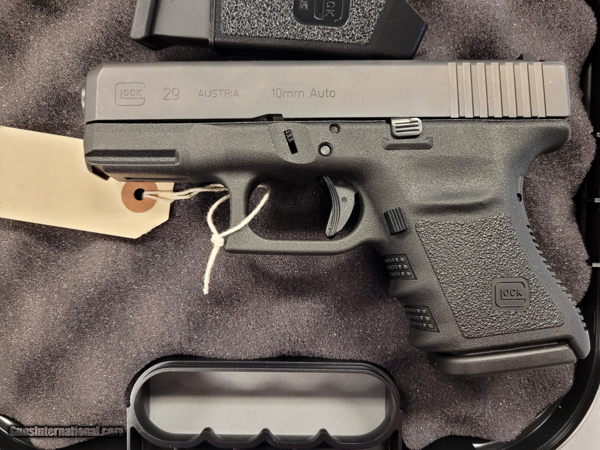 Description: Guns Listing ID: 551344 Unfired display model. Comes with 2 10 round magazines. SOLD Manufacturer: GLOCK Model: G29SF Caliber Info: 10MM Condition: Used - Non-Certified Barrels: 3.8" barrel |