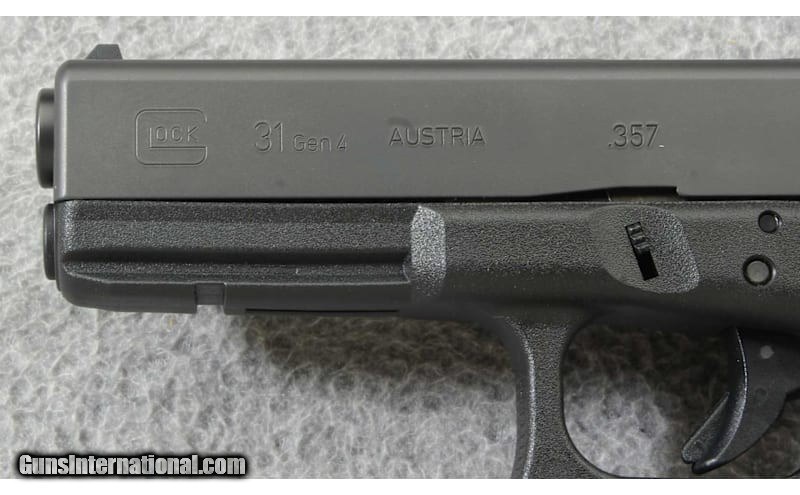 Description: This Glock G31 GEN4 .357 SIG boasts a nearly indestructible polymer frame that is stronger than steel. Tenifer coating on slides and barrel makes the G31 impervious to the elements. The Safe-Action-Pistol integrated safety features are standard. The G31's magazine release button is large making it easy to operate for both right and left-handed shooters. This is a good personal defense and carry pistol. .357 Sig SOLD Metal Condition: Excellent Bore Condition: Excellent Barrels: 4.49 inch barrel Triggers: Striker fire Weight: 26 oz. Sights: Standard Glock white outlined square notch rear sight and dot front Item Location: Lehi, UT |